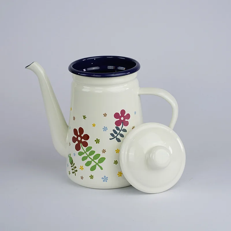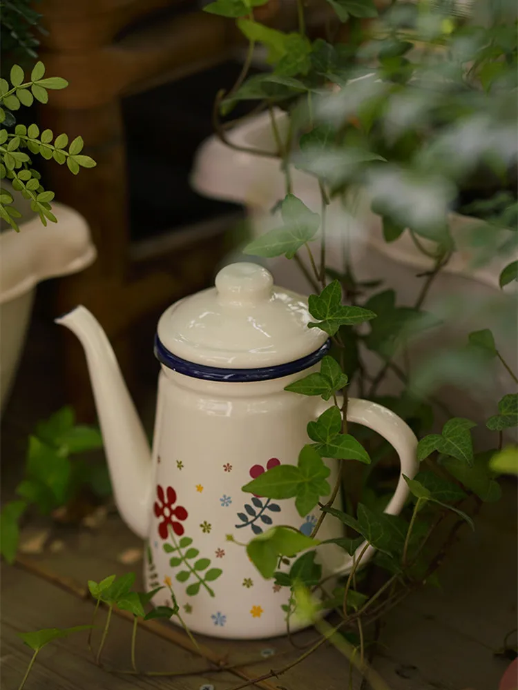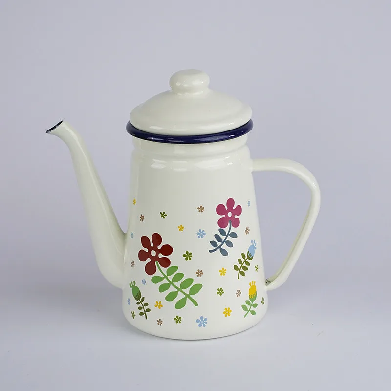 Home Kitchen Supplies Coffee Maker Enamel Teapot White Coffee Pot 1.1L