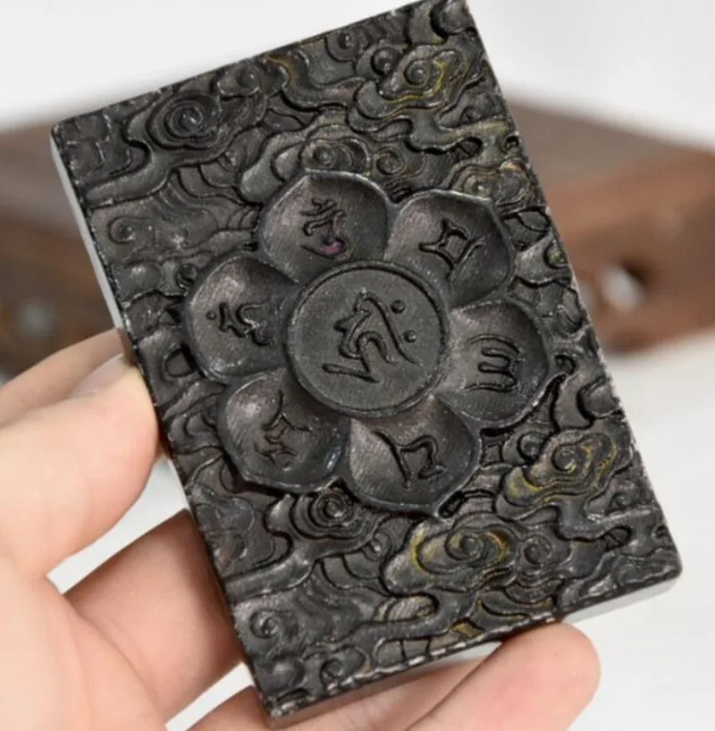 Hongshan culture archaize black iron meteorite Buddhism Mantra amulet statue