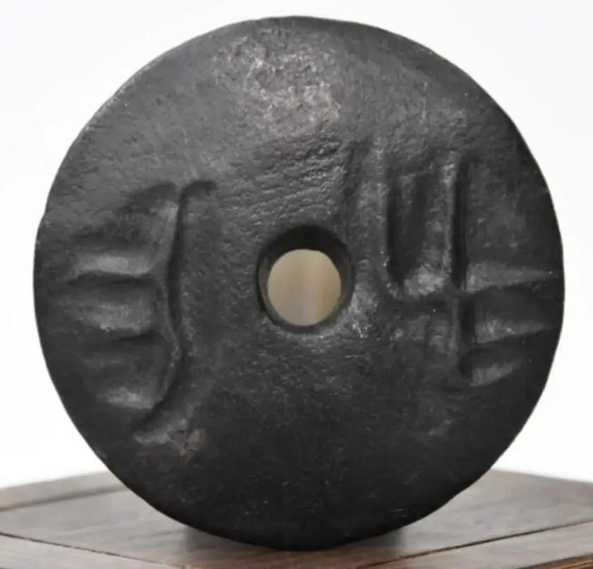Hongshan culture archaize black iron meteorite sculpture Peace buckle bi statue