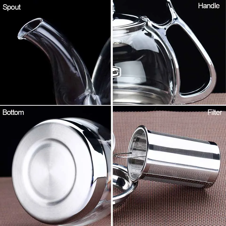 * The teapot is made of high-quality borosilicate and high heat-resistant glass, and the bottom of the teapot is made of stainless steel. It can be heated directly on an open flame, and can also be used in induction cookers, electric ceramic cookers, etc.