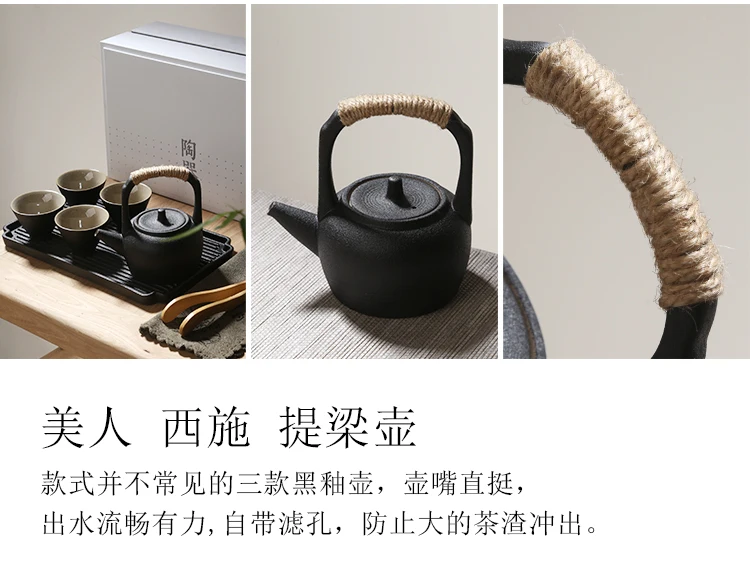 Japanese black pottery portable travel tea set Kung Fu tea suit with teapot teacup tray high grade gift box free shippig