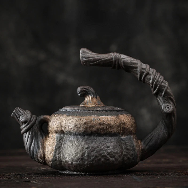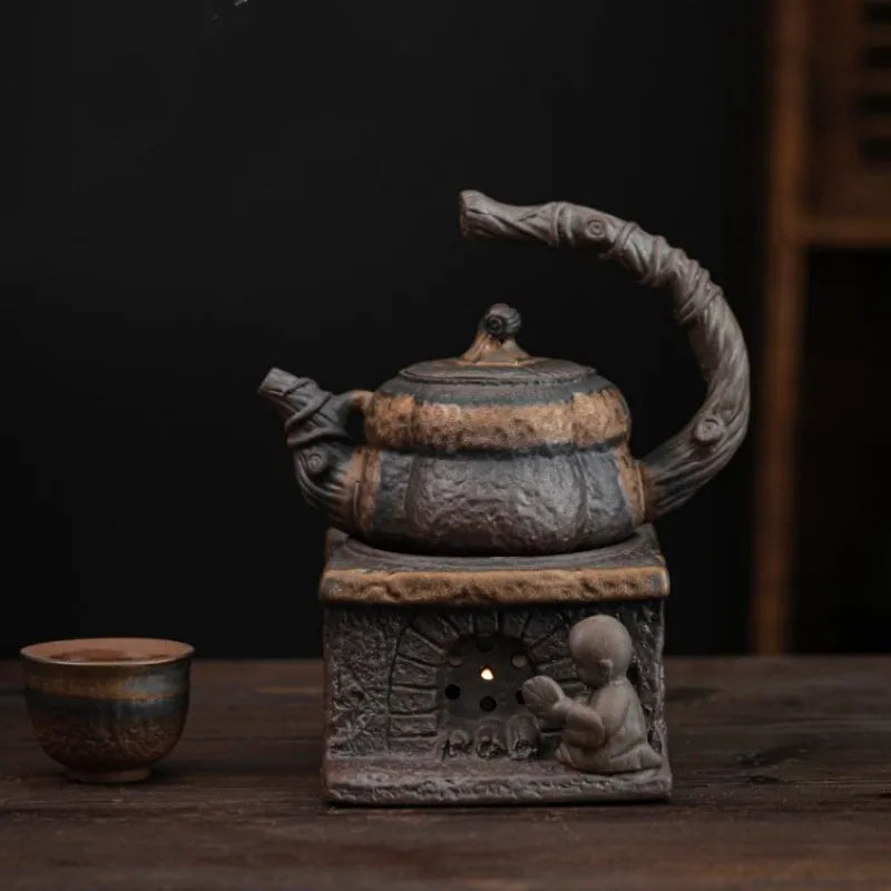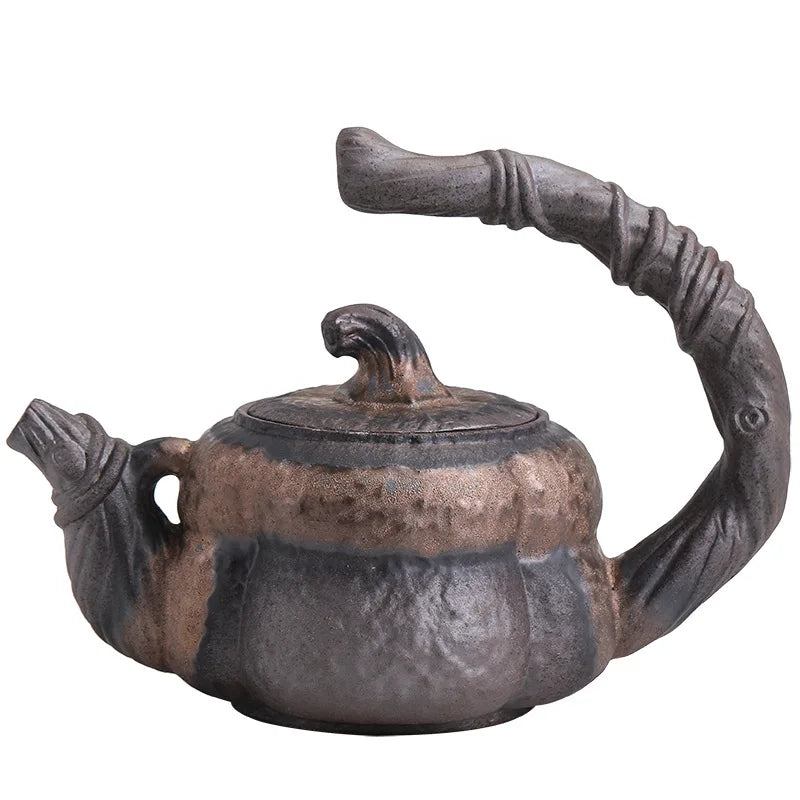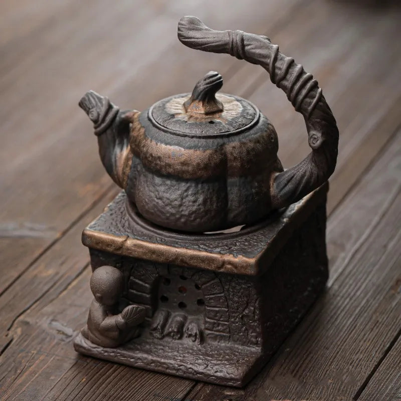 Japanese Handmade Stoneware Teapot Tea Pot Gilt Pumpkin Lifting Beam Pot Candle Warm Teapot Set Infuser Teaware Kitchen Dining