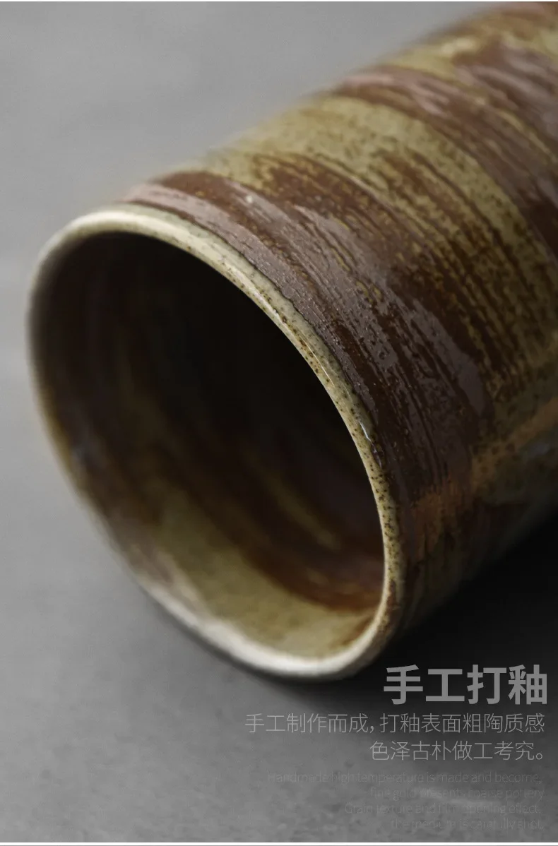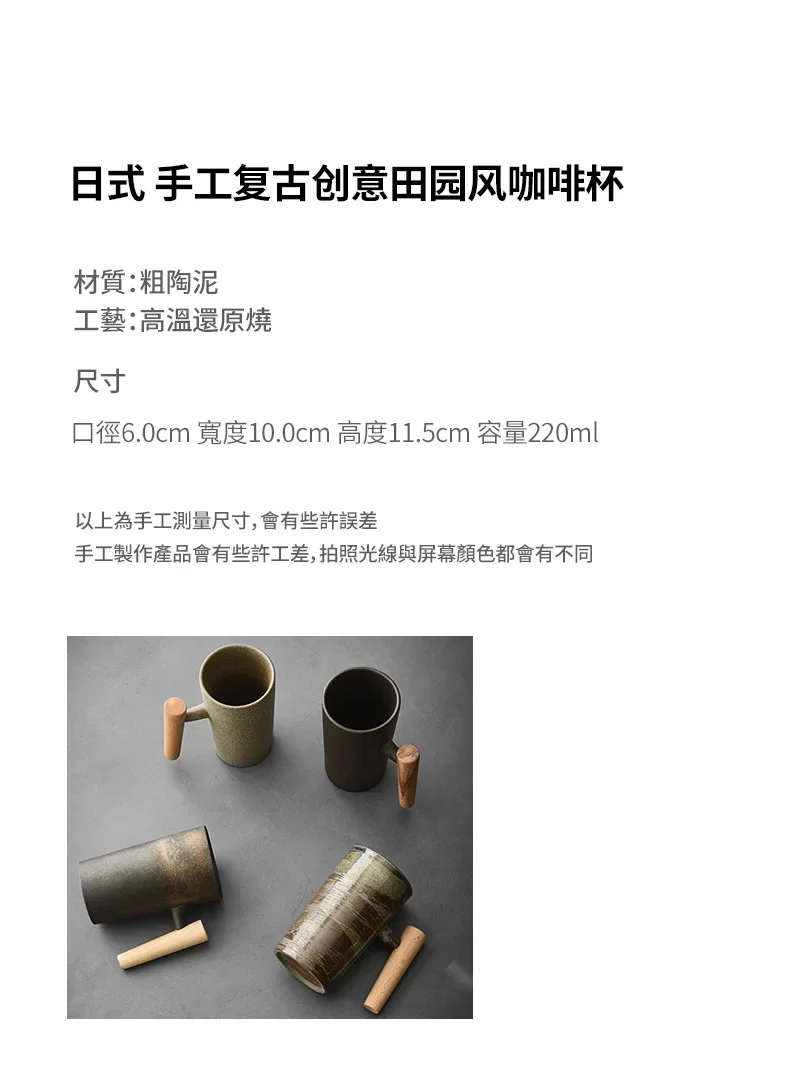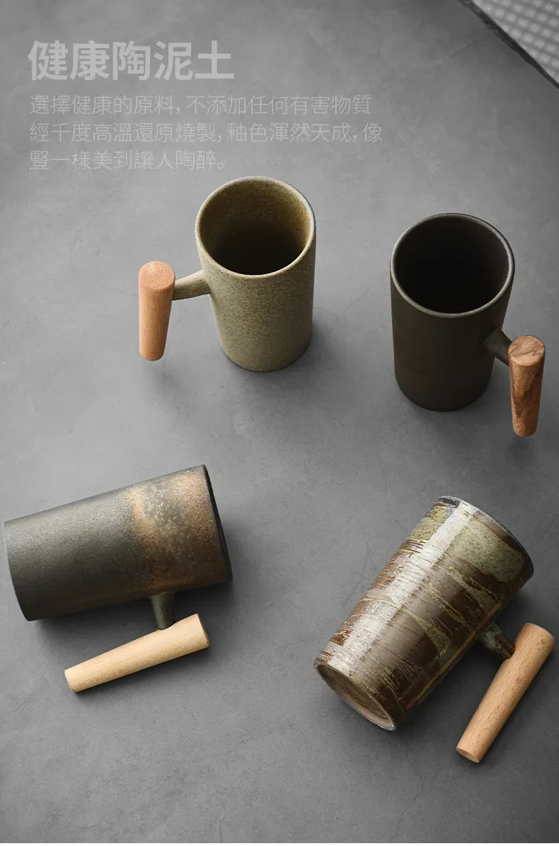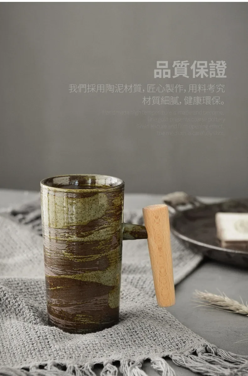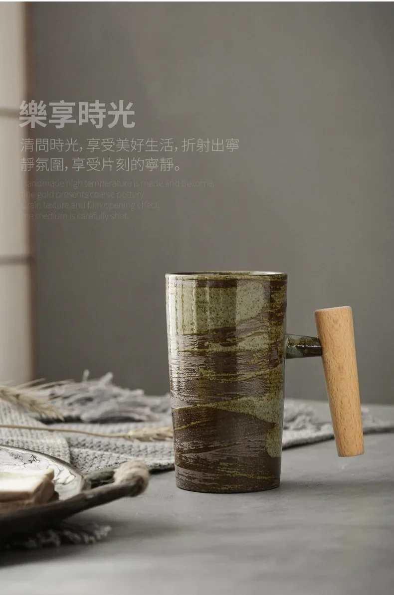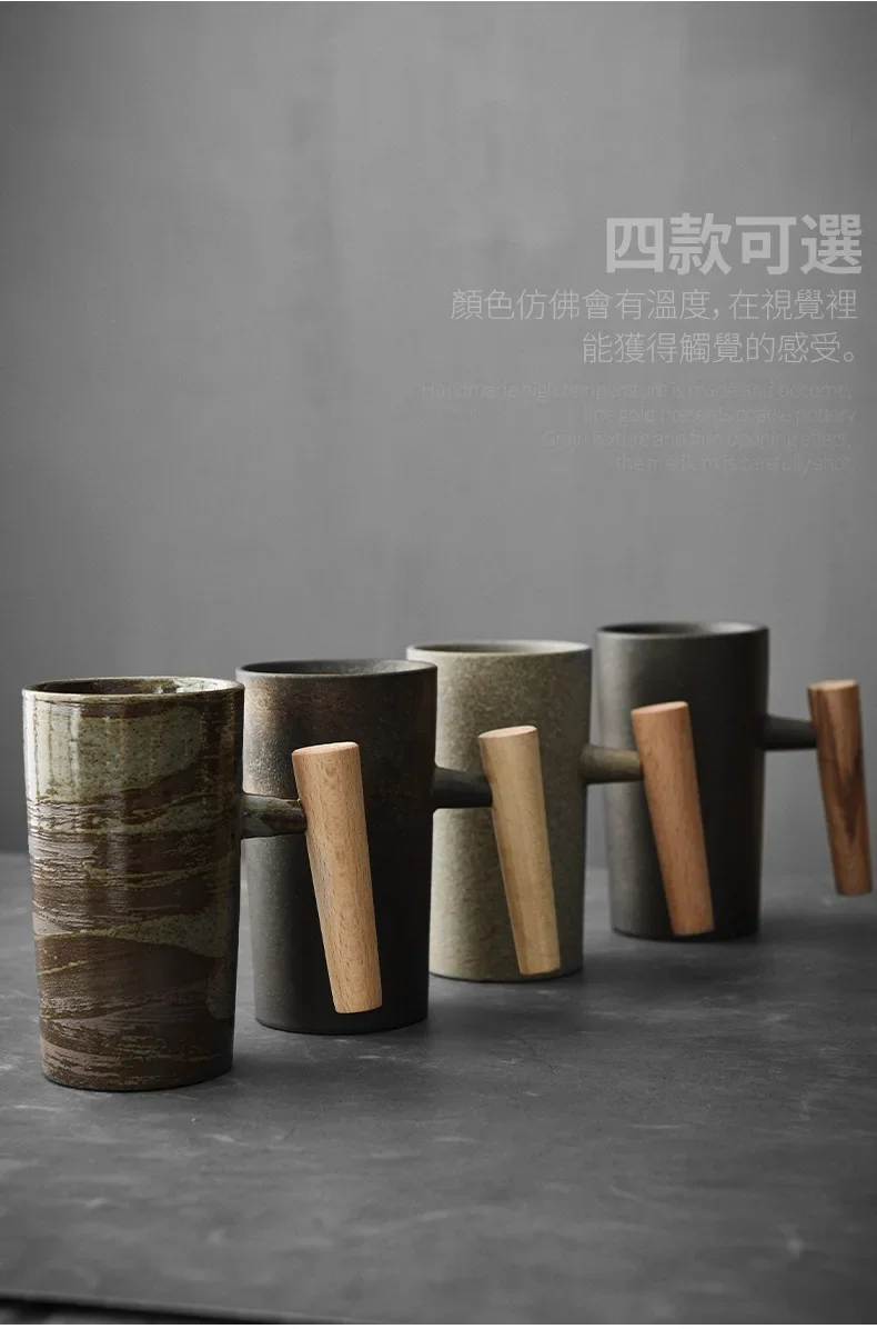 Japanese Style Handmade Stoneware Coffee Cup Hand Punch Vintage Kiln Baked Wooden Handle Mug Personality Couple Household Water