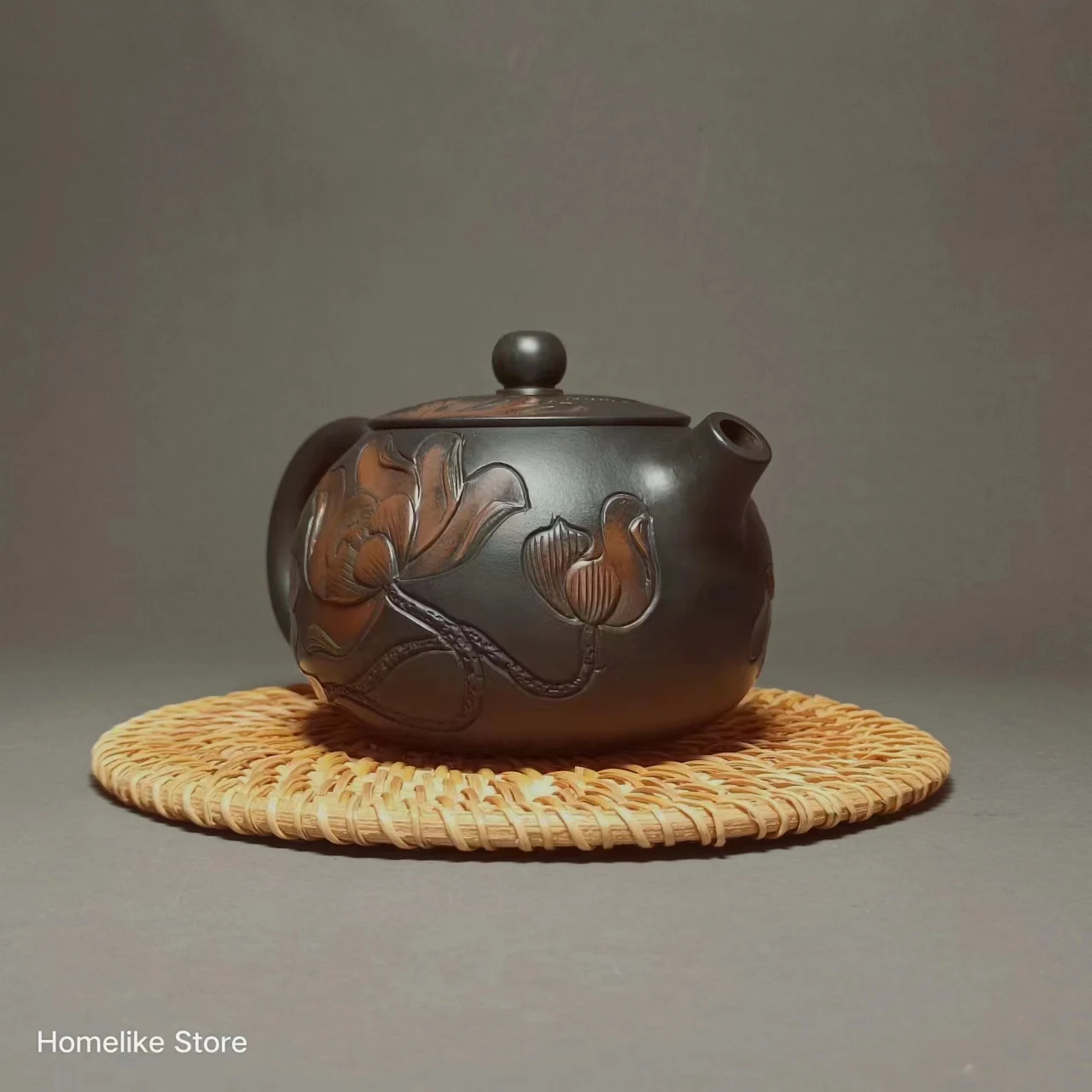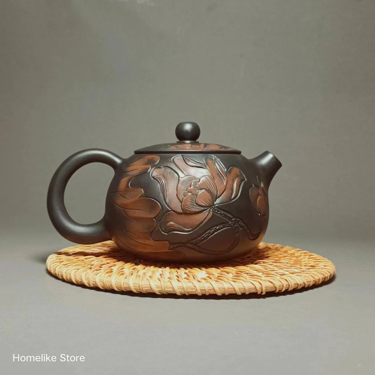 The shallow carved lotus flower pot can be used for collection or use.