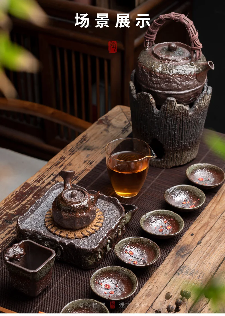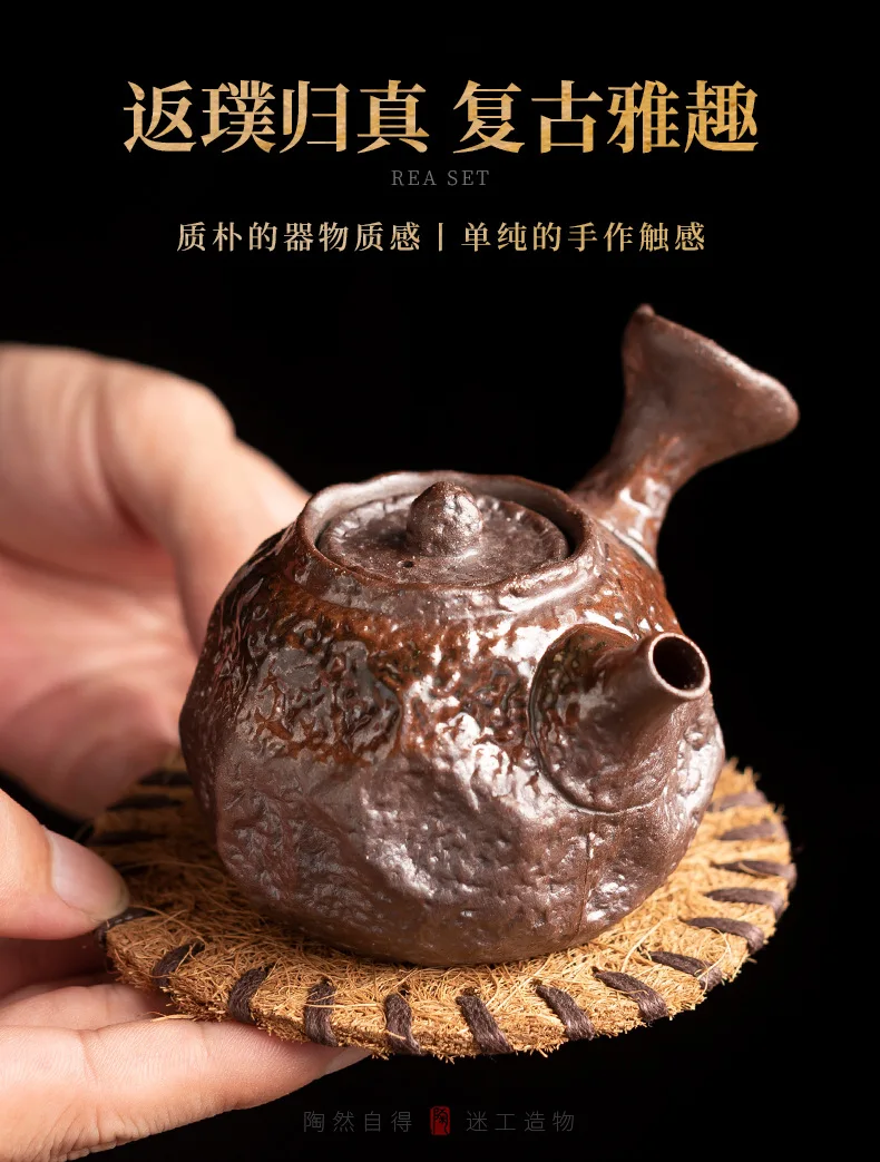 Kiln Change Ceramic Small Capacity Tea Set Teapot Clear Water Wood Fired Ceramic Small Teapot Pottery Fan Single Pot Infuser Bar
