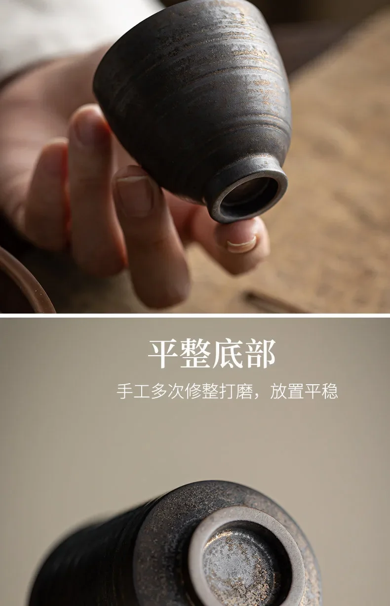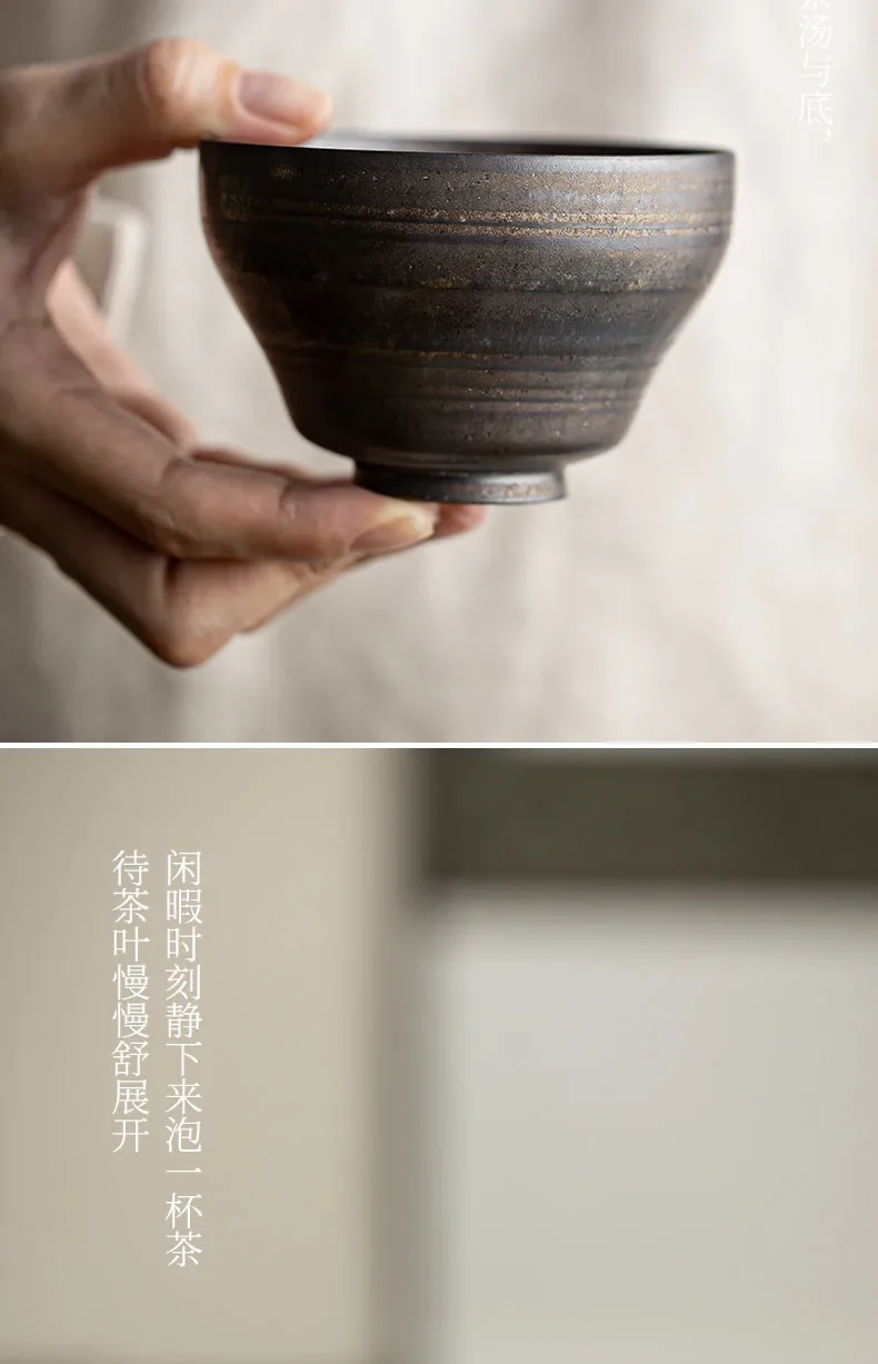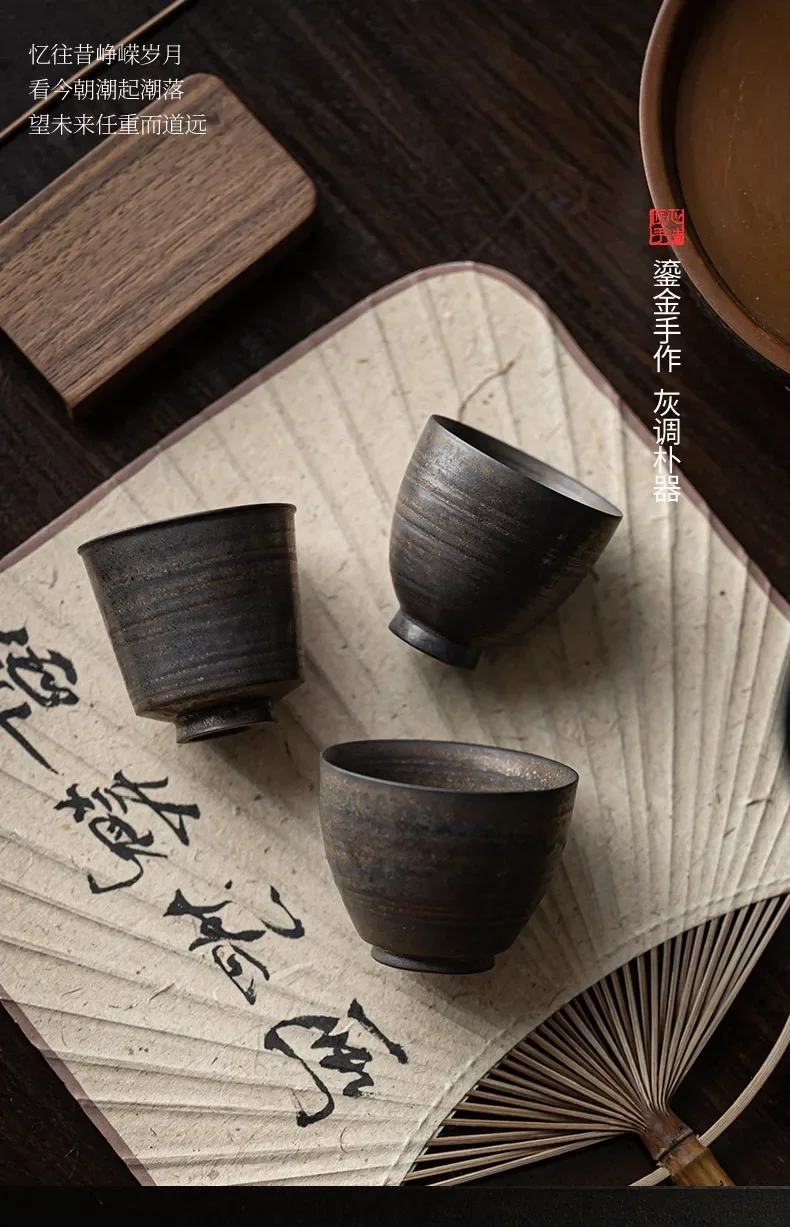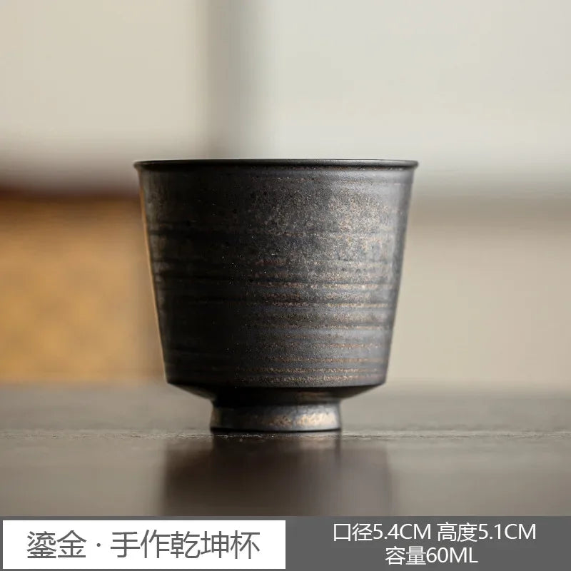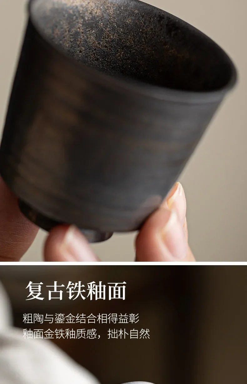 Kung Fu Tea Set Personal Cup Household Stoneware Retro Master Gilt Handmade Pottery Cups Teaware Kitchen Dining Bar Home Garden