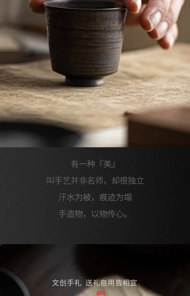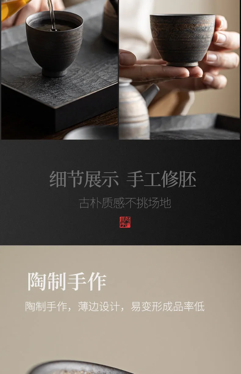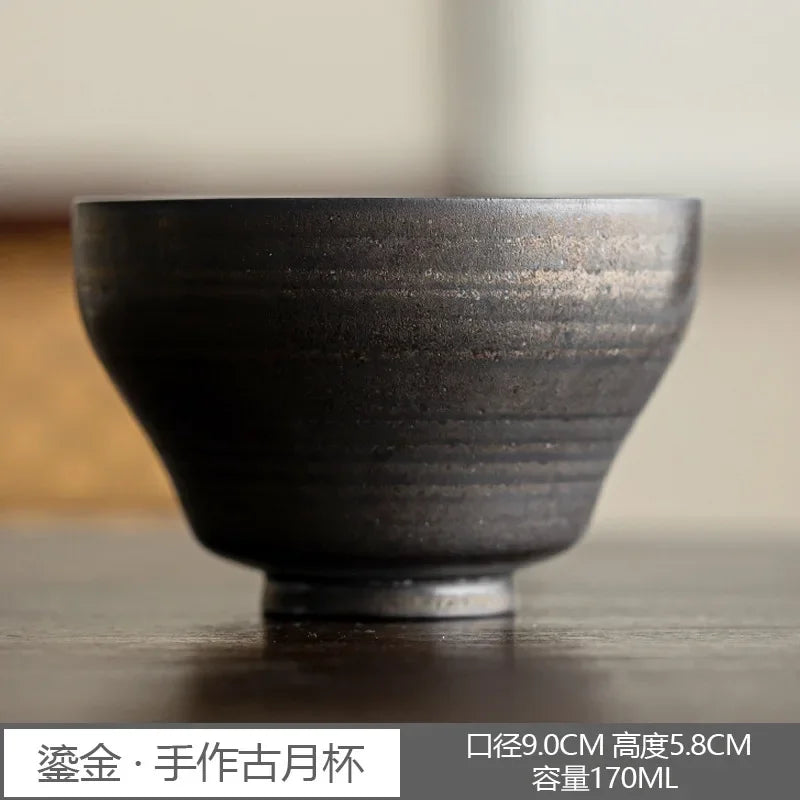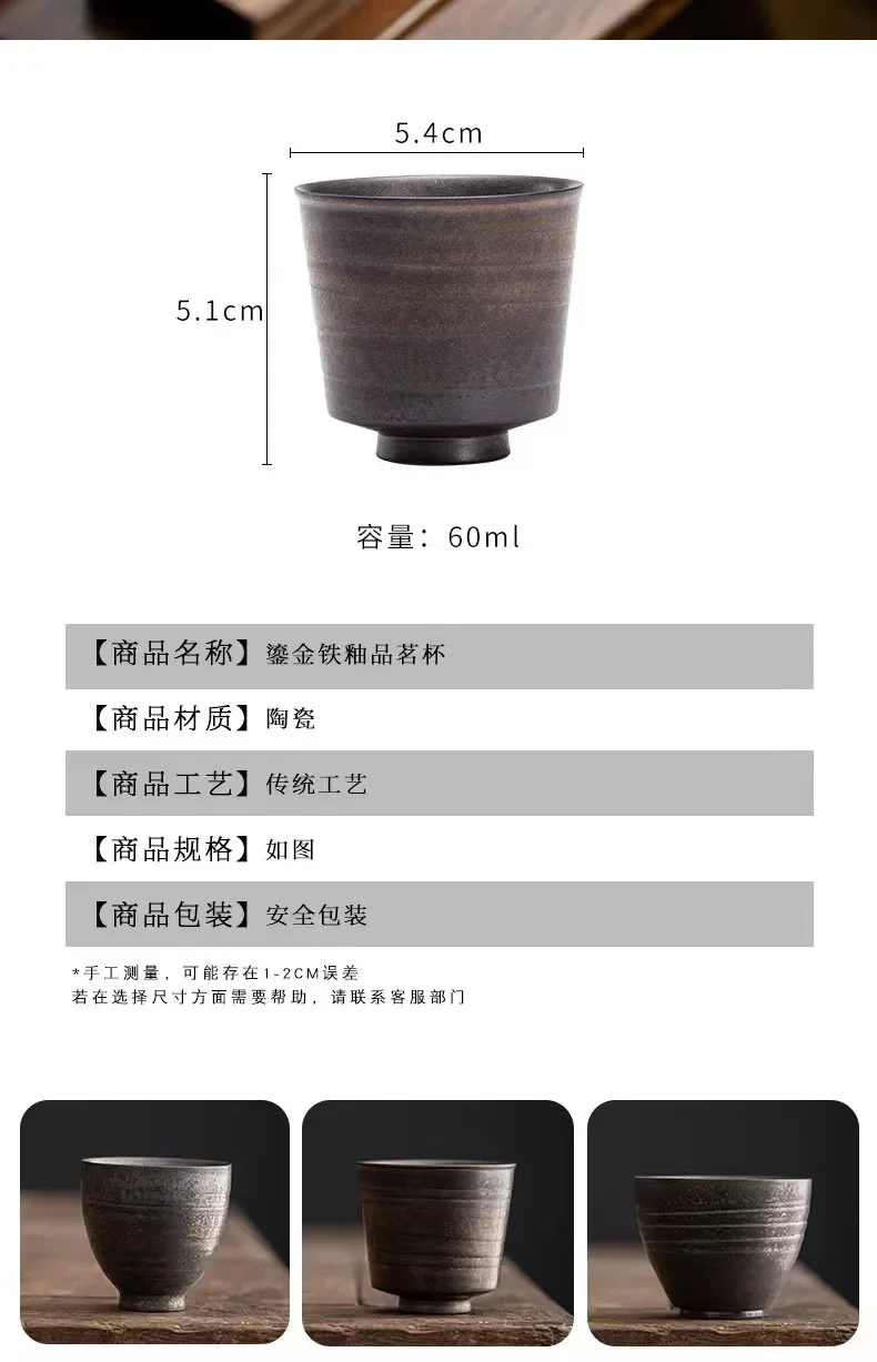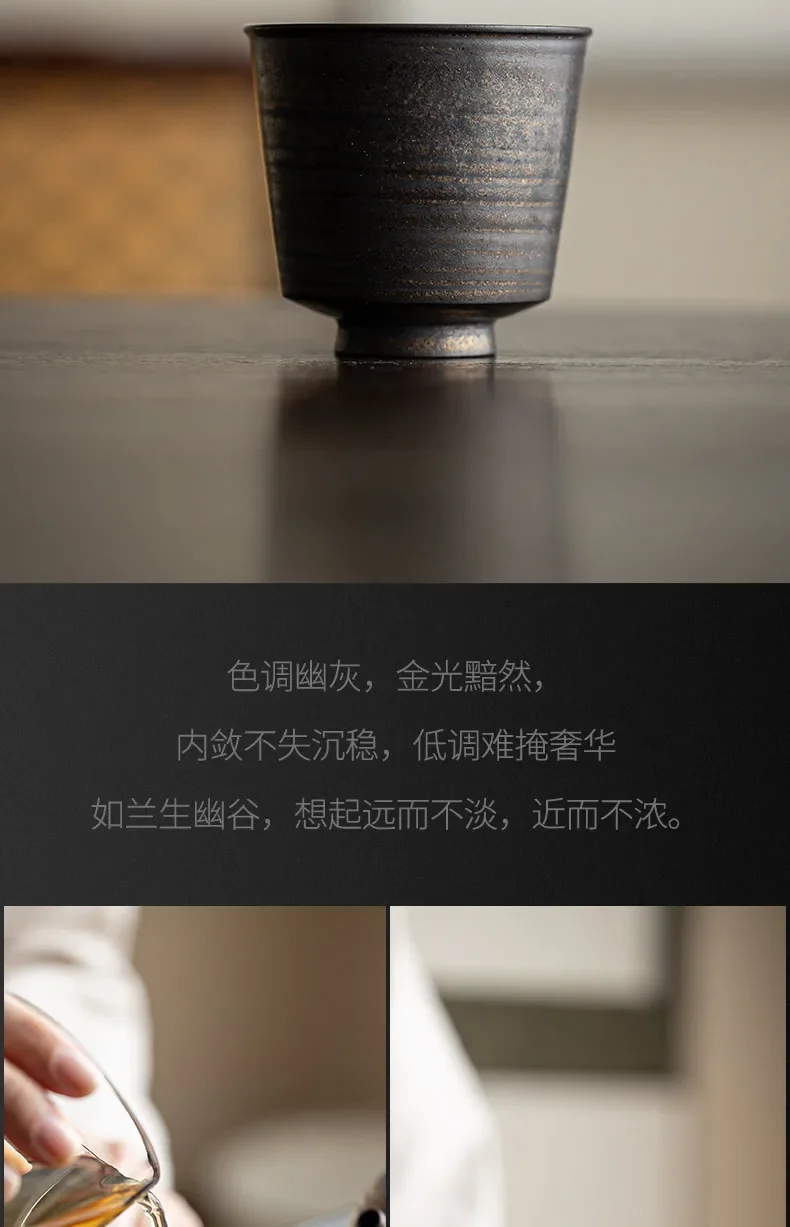 Kung Fu Tea Set Personal Cup Household Stoneware Retro Master Gilt Handmade Pottery Cups Teaware Kitchen Dining Bar Home Garden