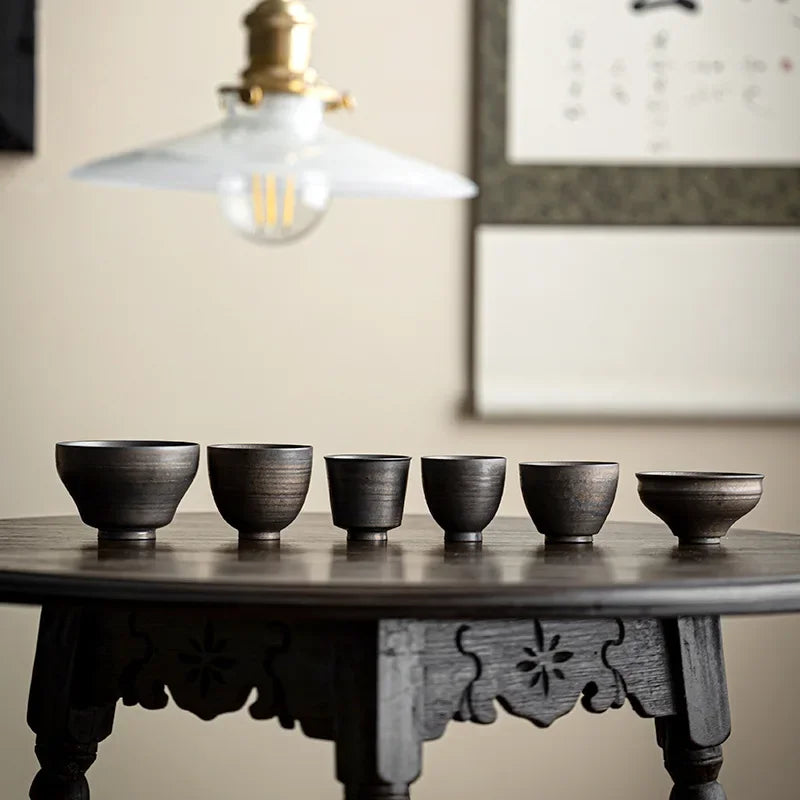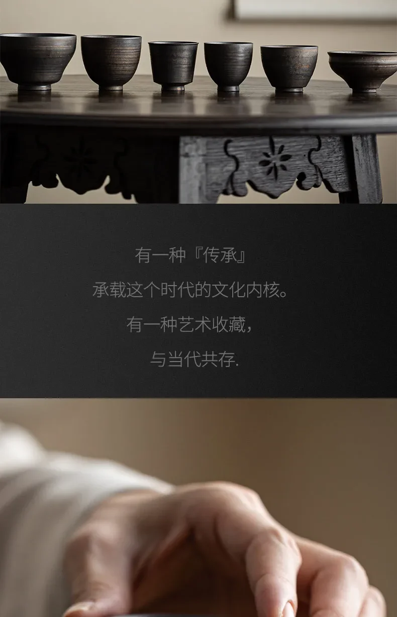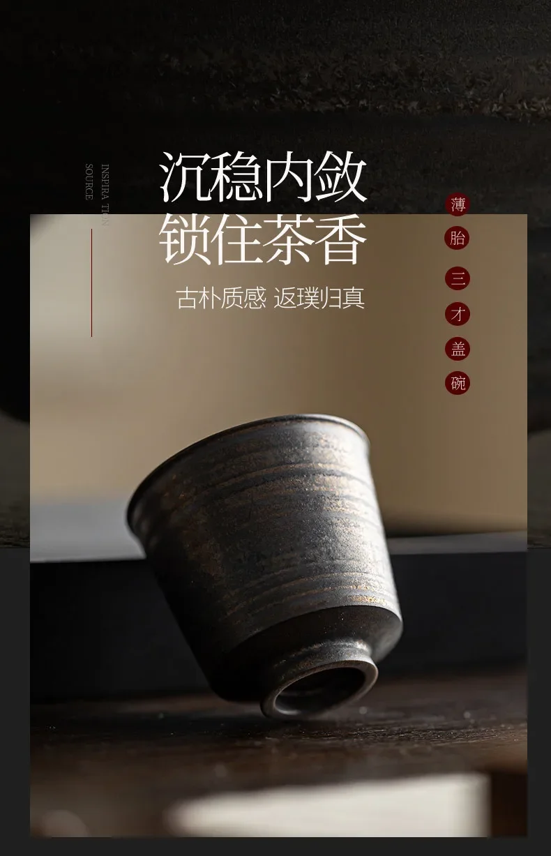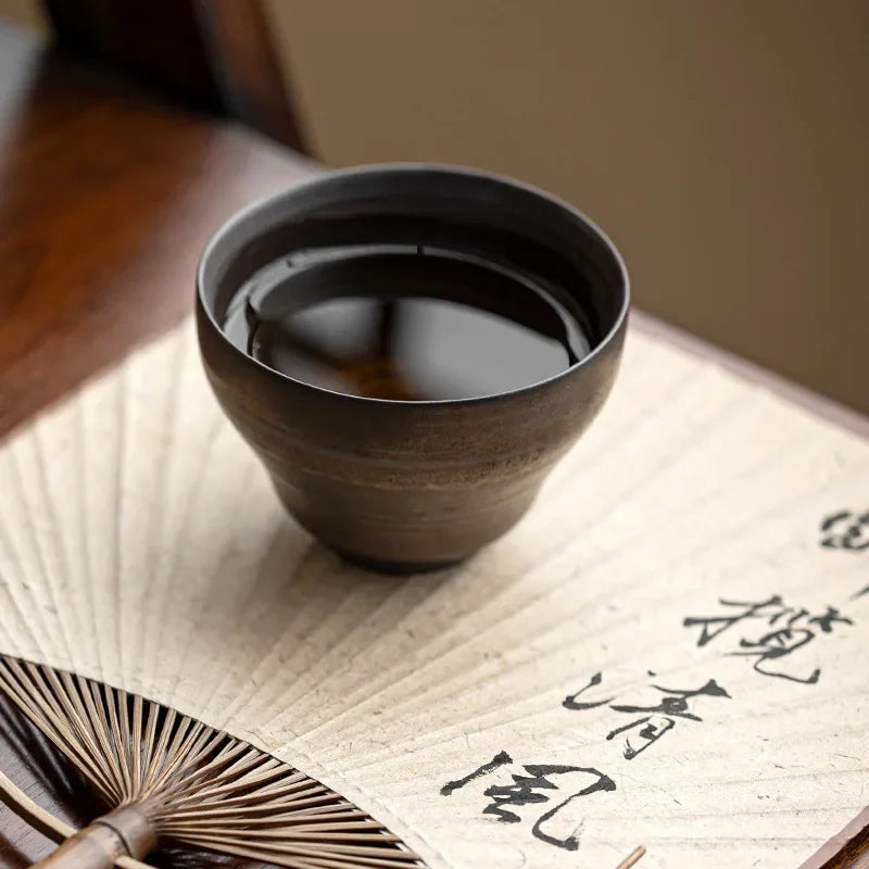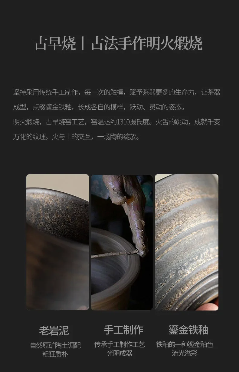 Kung Fu Tea Set Personal Cup Household Stoneware Retro Master Gilt Handmade Pottery Cups Teaware Kitchen Dining Bar Home Garden