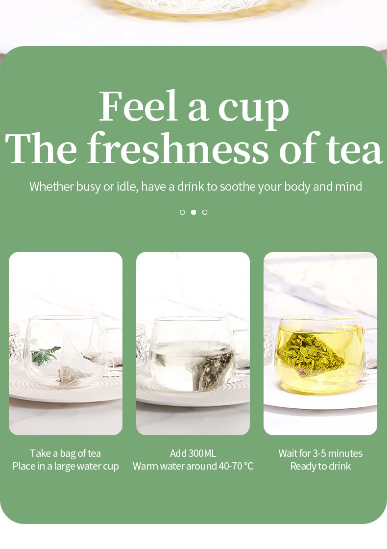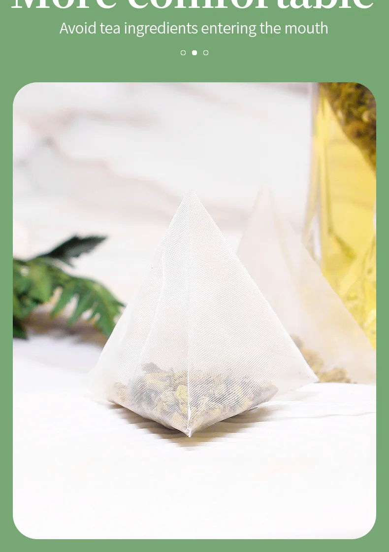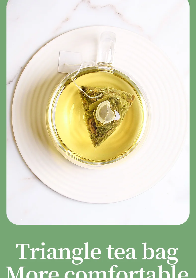 This product adopts a triangular tea bag design, which can prevent tea ingredients from entering the mouth when drinking.
