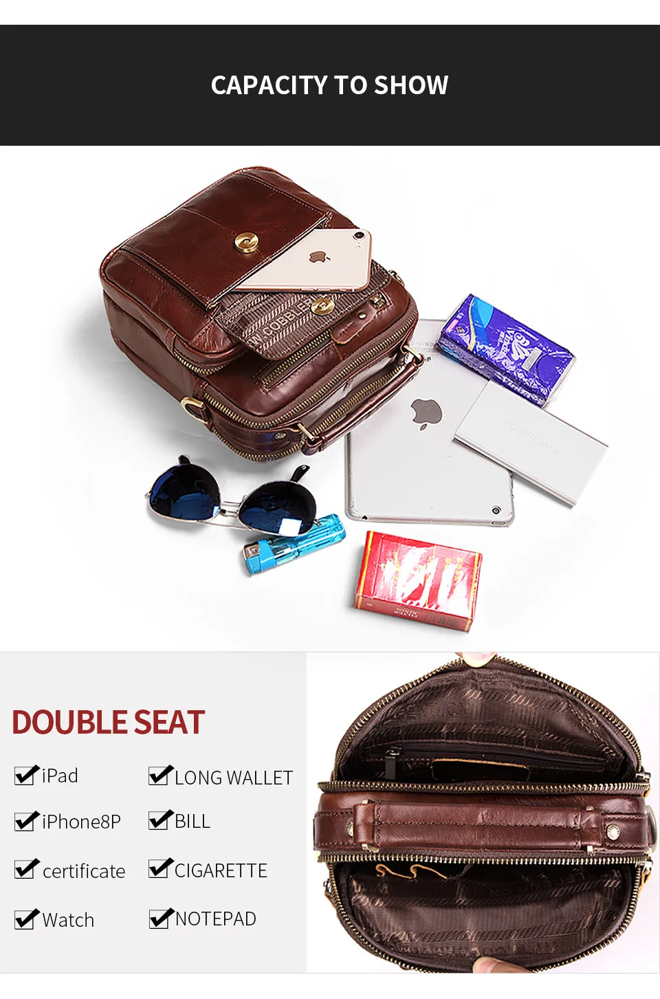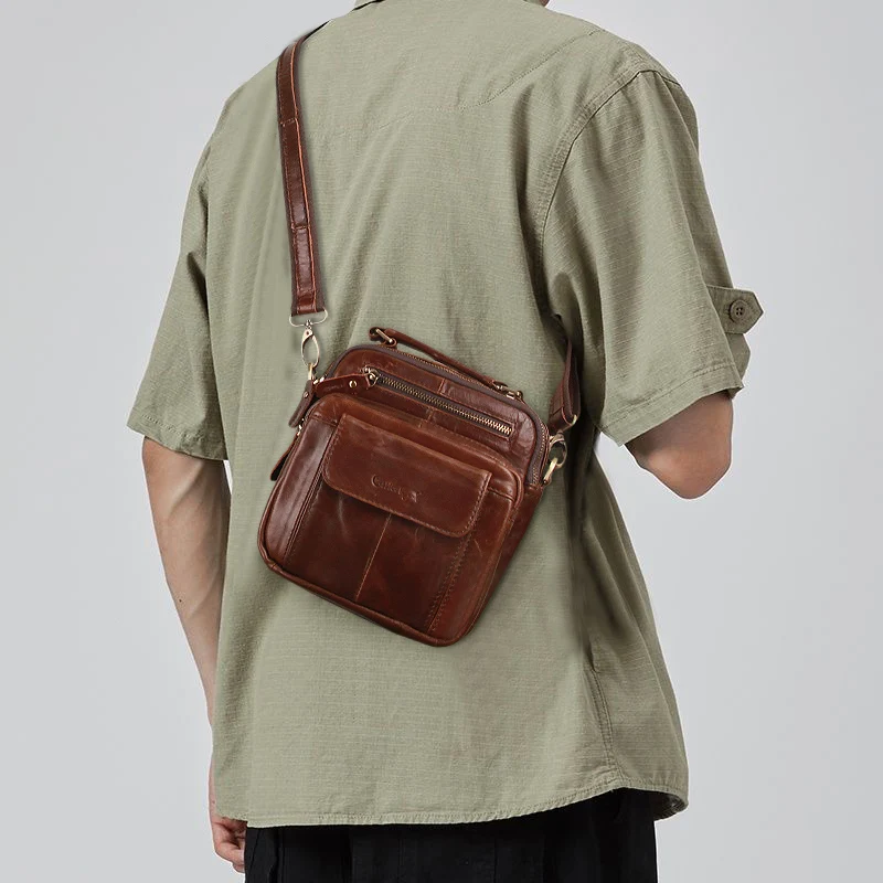 Men's leather shoulder bag restoring ancient ways recreation business leather bag, high-capacity package