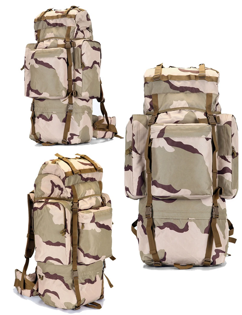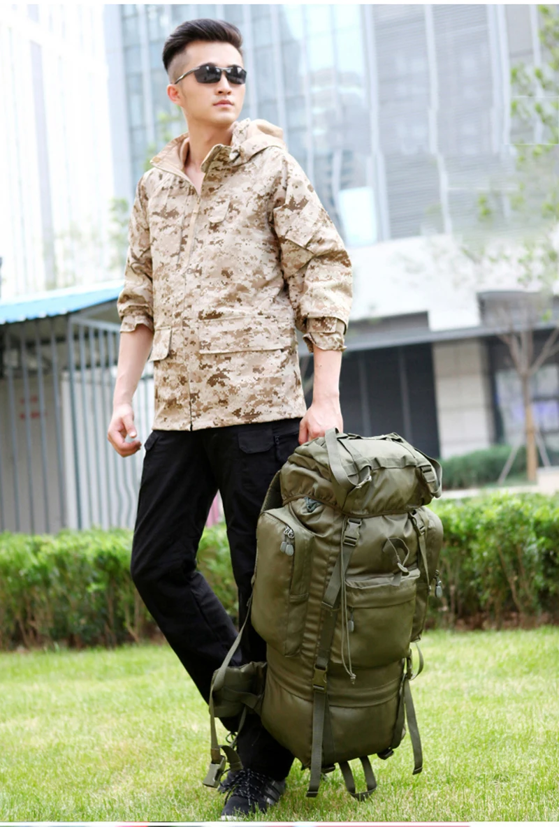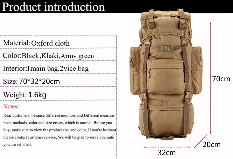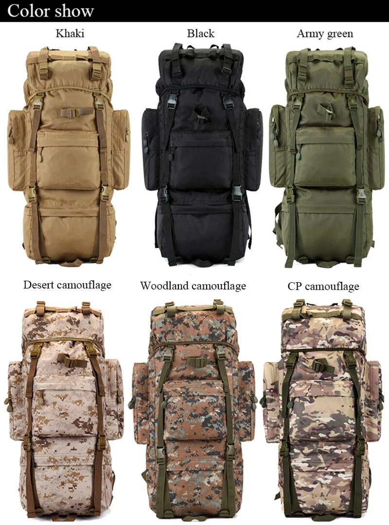 Shipping list: 1 * backpack (with aluminum frame), 1 * rain cover 70L 70L Large Capacity Military Tactical Backpack Man Climbing Backpacks Men High Quality Oxford Backpack Bags Waterproof Travel Bag