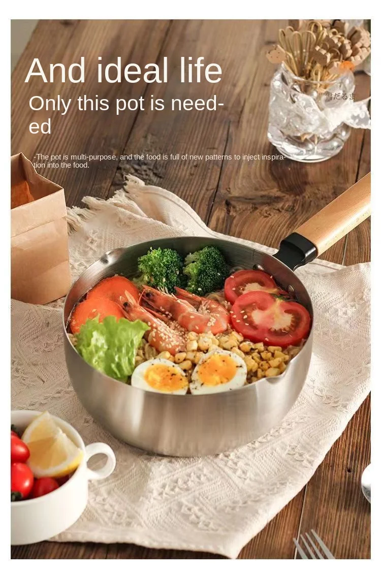 Multifunctional Japanese Snow Flat Pot for Noodles, Vegetables, Baby Food, etc. Compatible with Induction & Gas Stove