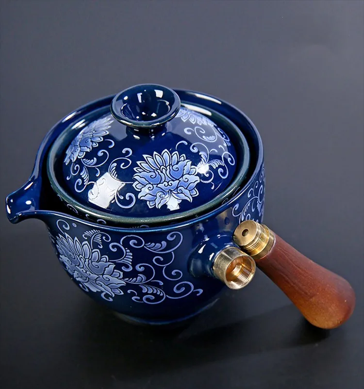 New Style Ceramic Glass Teapot Chinese Gongfu Tea Pot 360 Rotation Tea Maker Automatic Single Pot Teapot For Tea