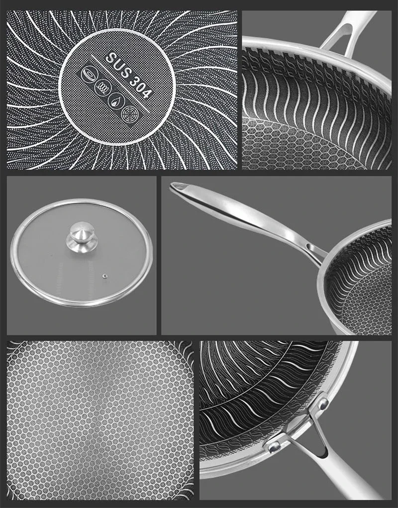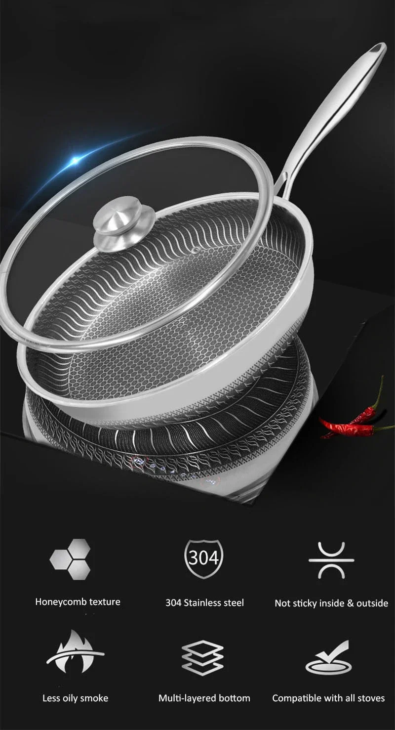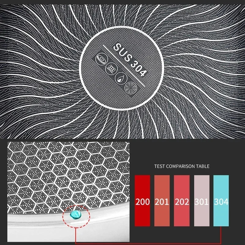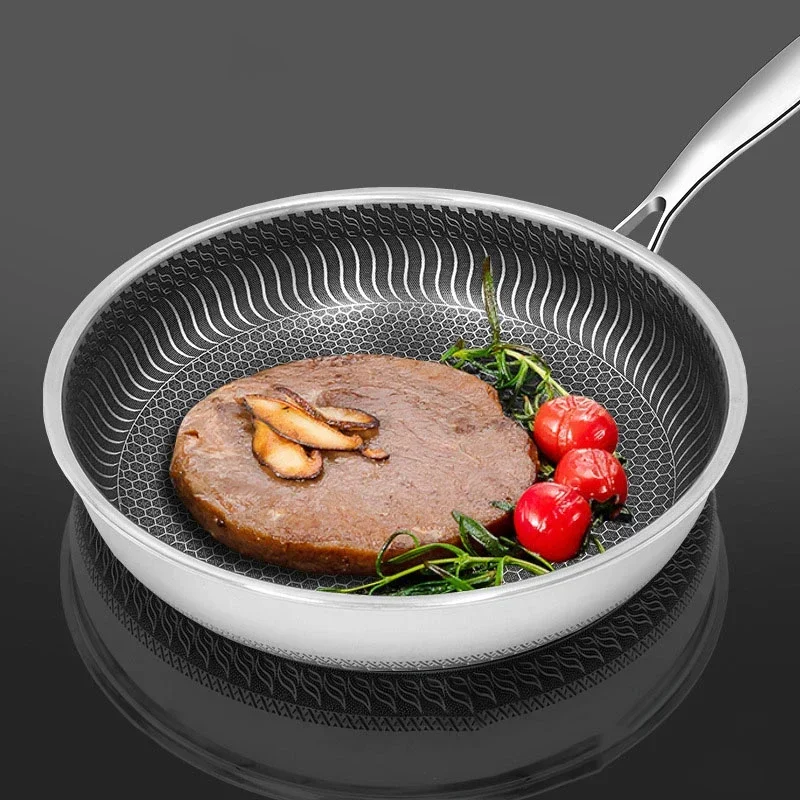 304 stainless steel non-sticky no-coating frying pan