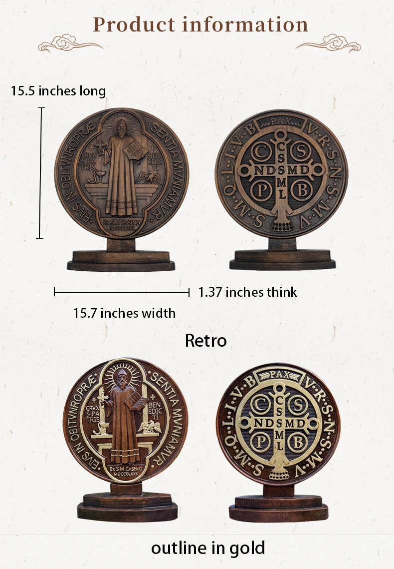 Nucia's Order of St. Benedict Double-sided Home Counter Church St. Benedict Ornament Religious Christian Catholic Saint Statue
