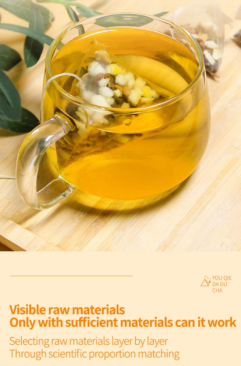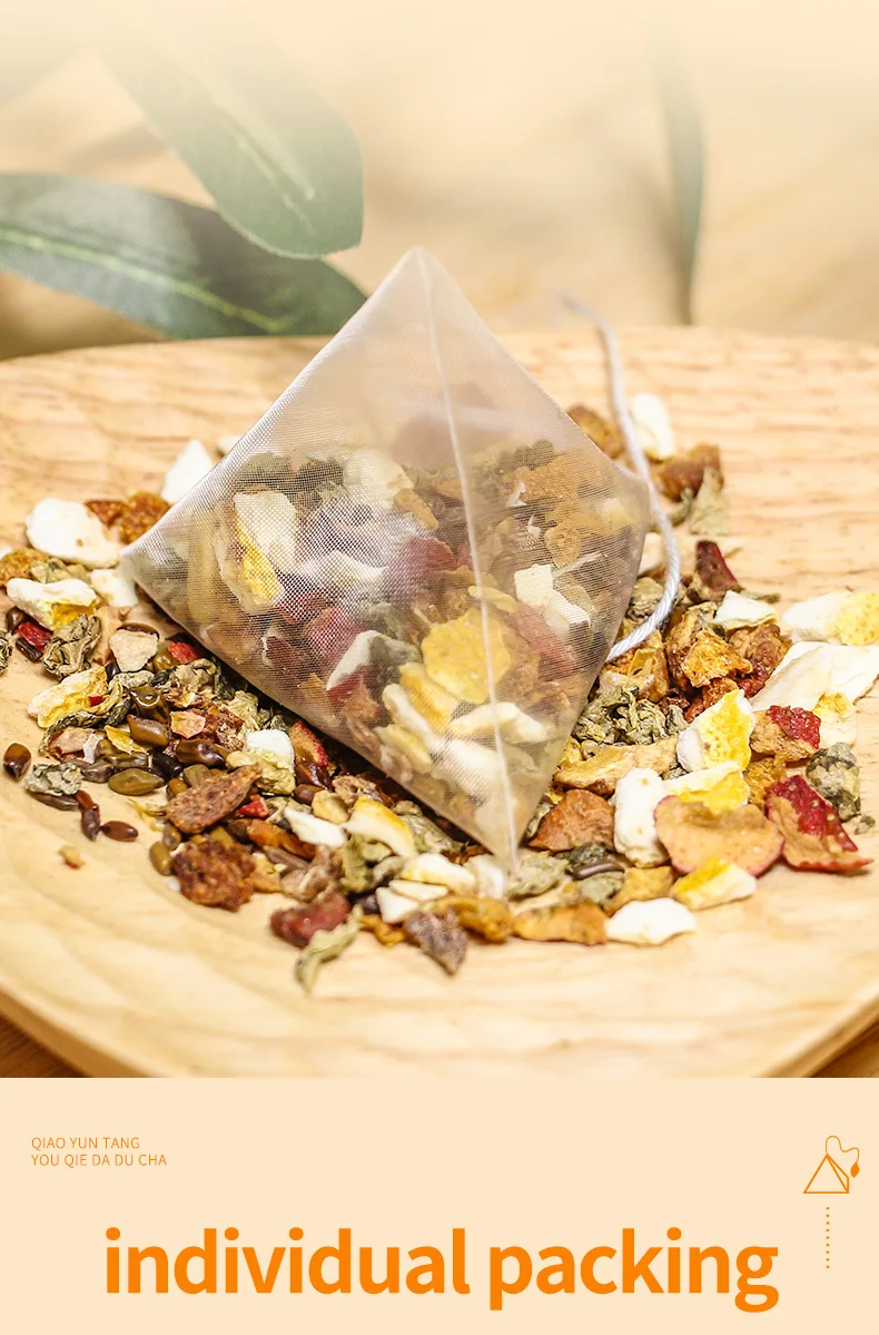 This product adopts a triangular tea bag design, which can prevent tea ingredients from entering the mouth when drinking.
