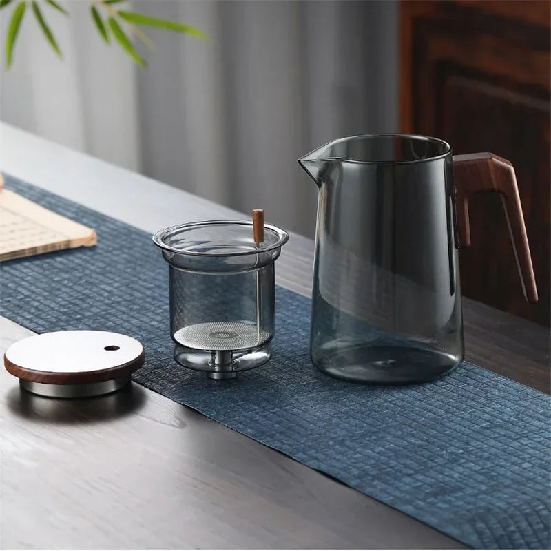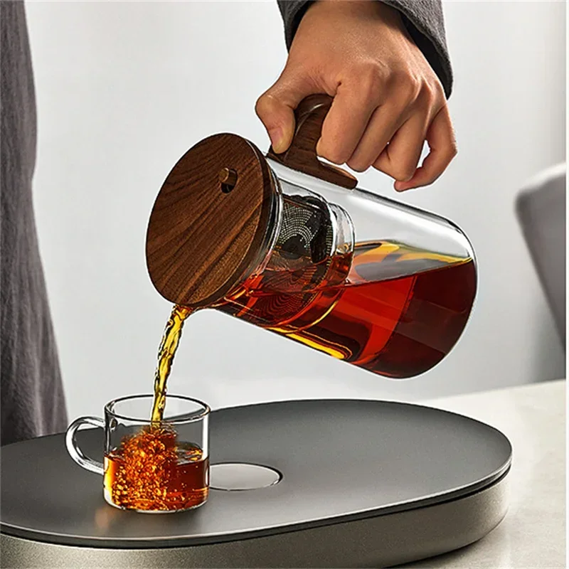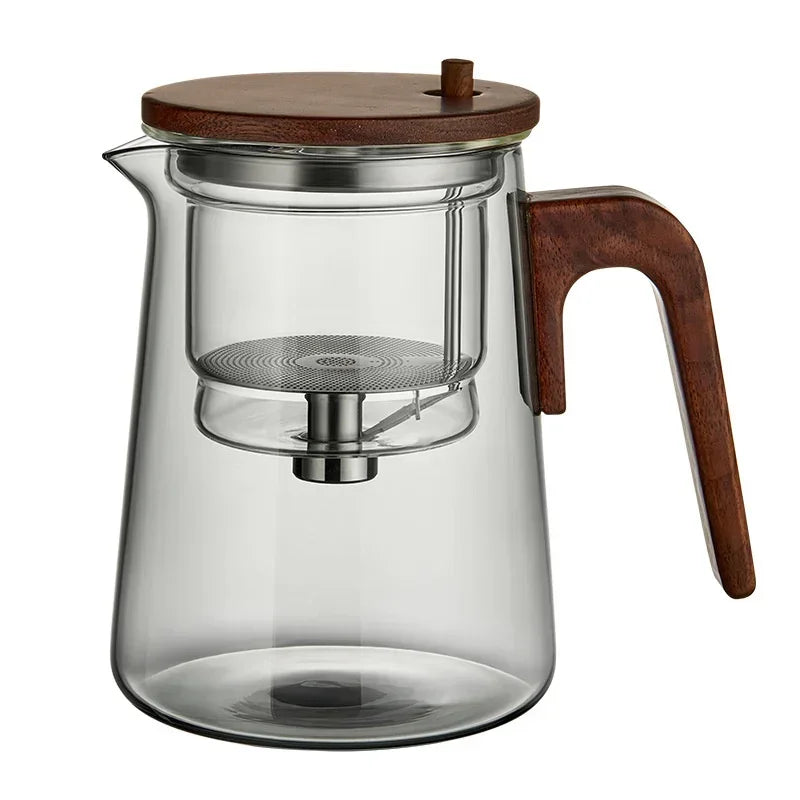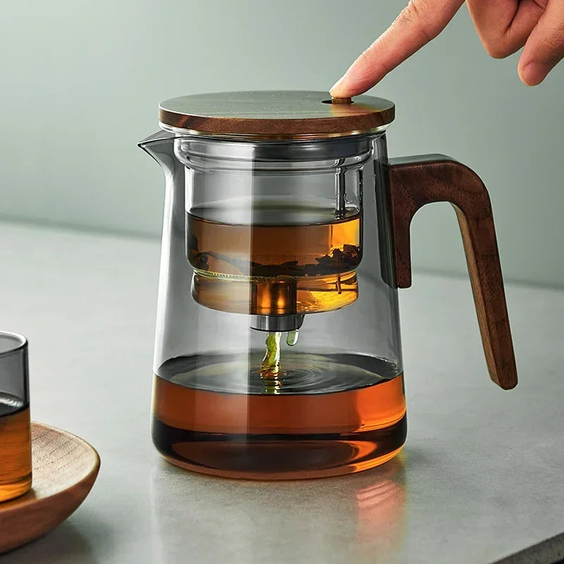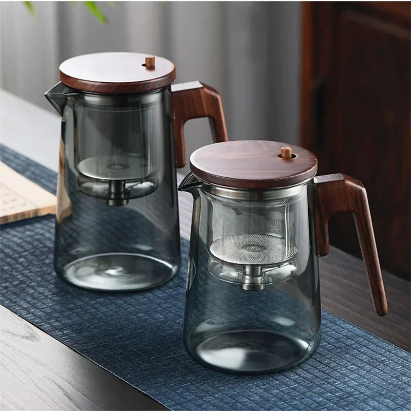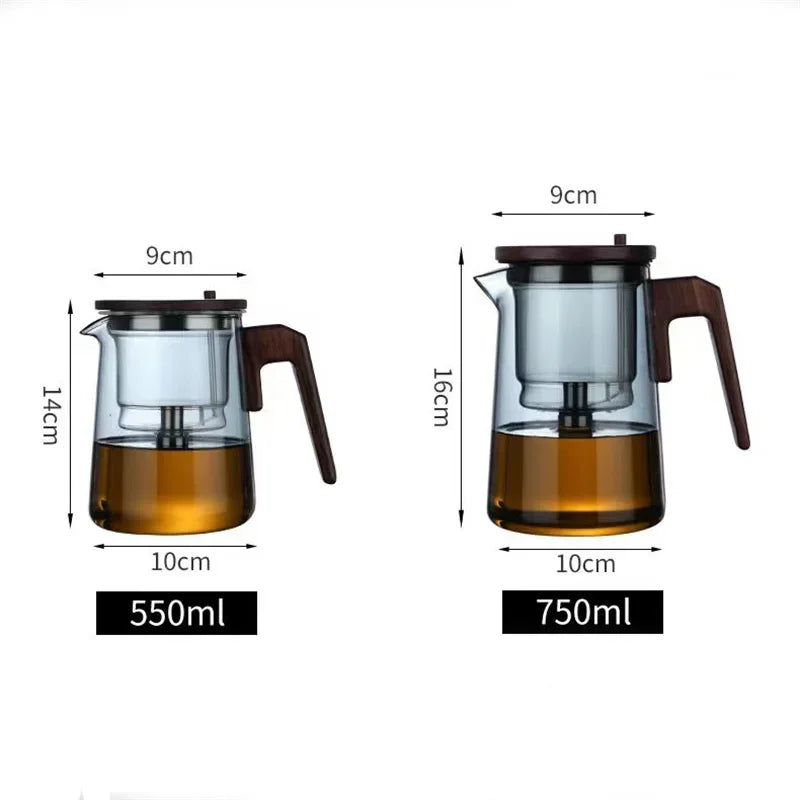 One Click Tea Separation Filtration Glass Teapots With Wood Handle Tea Water Separation Inner Container Tea Pot With Infuser