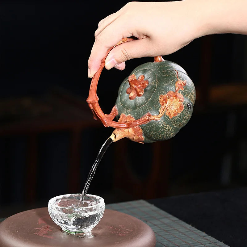 【Introduced】Pumpkin Lifting Handle with Pumpkin into the Pot, Show the Tranquil Beauty of Nature,Through Its Alignment、Color、a Clever Combination of Workers,Make the Works Vivid,Lifelike。Regarded as Elegant,Participate in This Matter,Become Elegant。Realistic in Form,It Also Takes into Account the Actual Functions.,This Pot Is Comfortable to Hold,Water Refreshing and Quick Disease, Good Presentation of Ornamental and Practical。