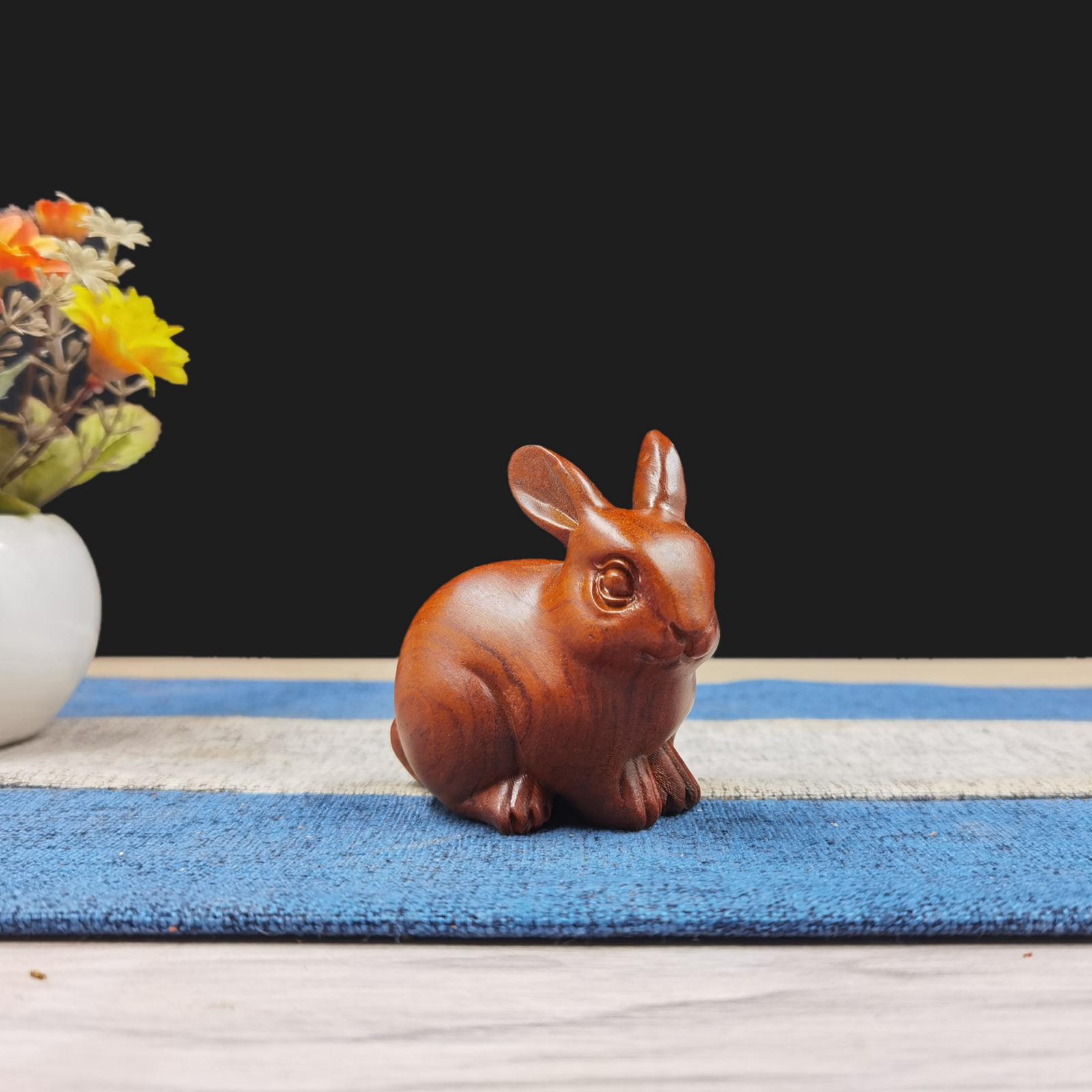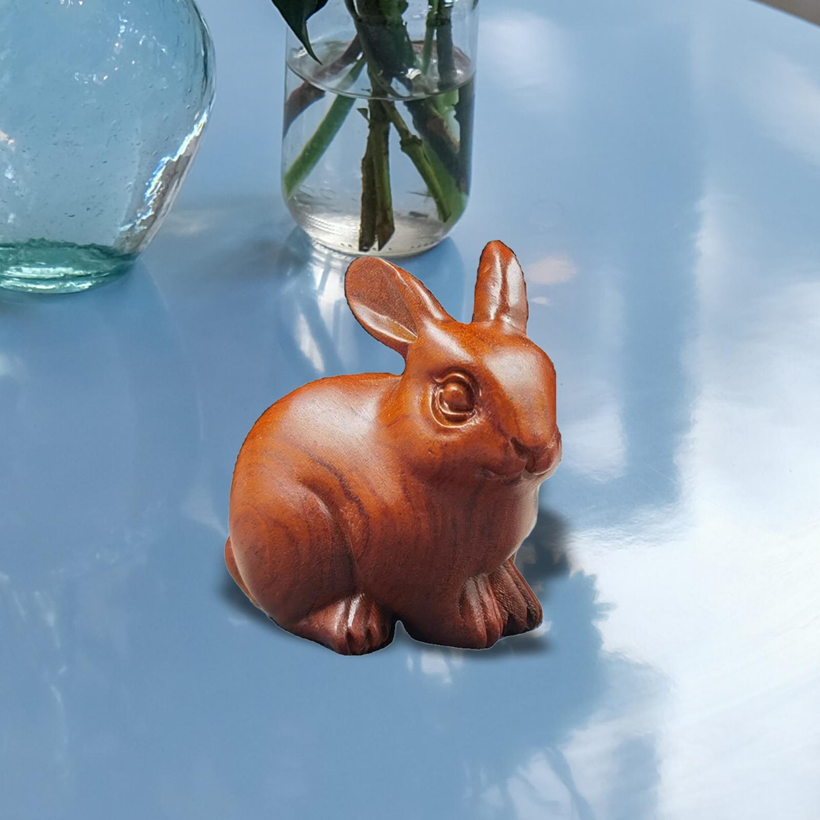 Rabbit Statue Decor Wood Rabbit Figurine Hand Carving Statue for Outdoor