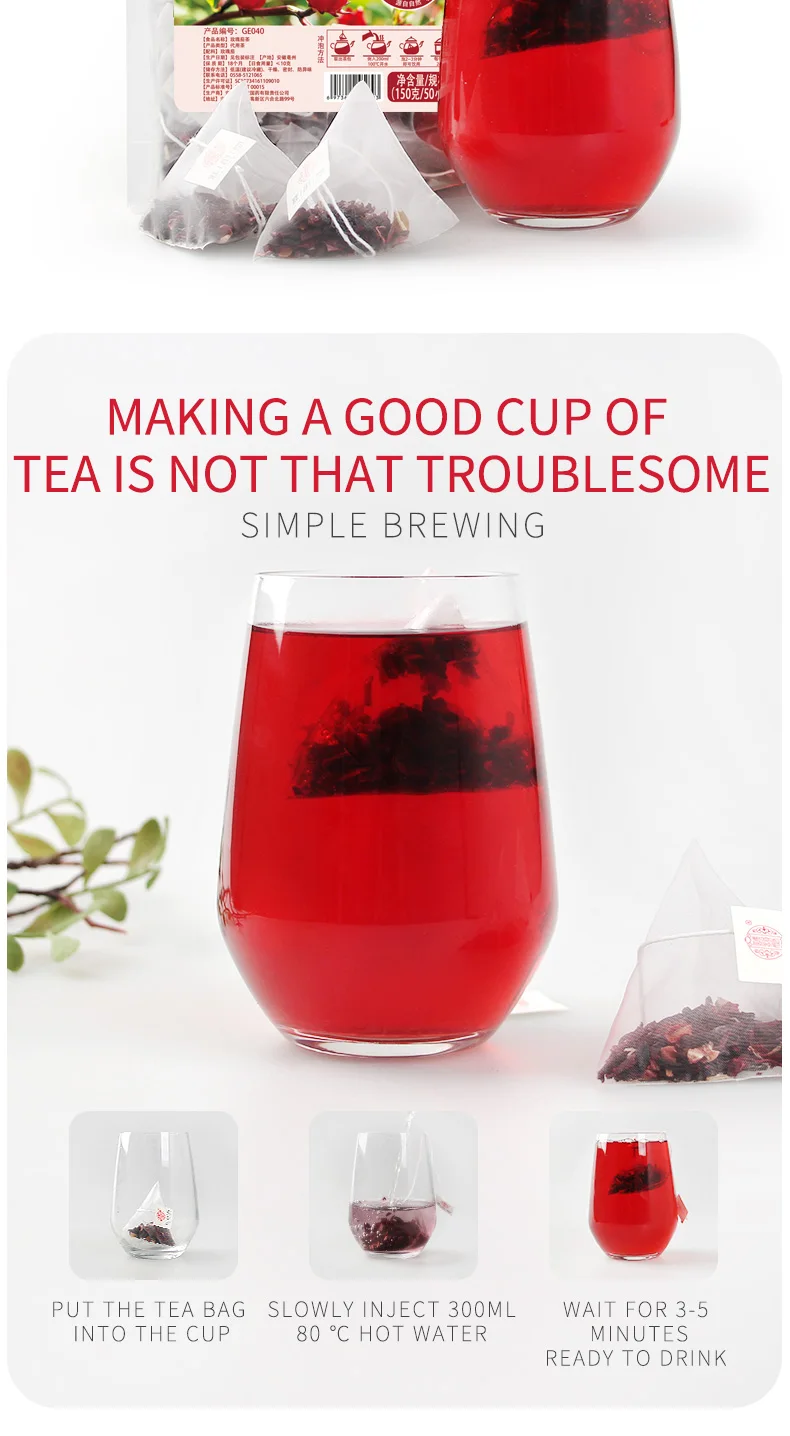 This product adopts a triangular tea bag design, which can prevent tea ingredients from entering the mouth when drinking.