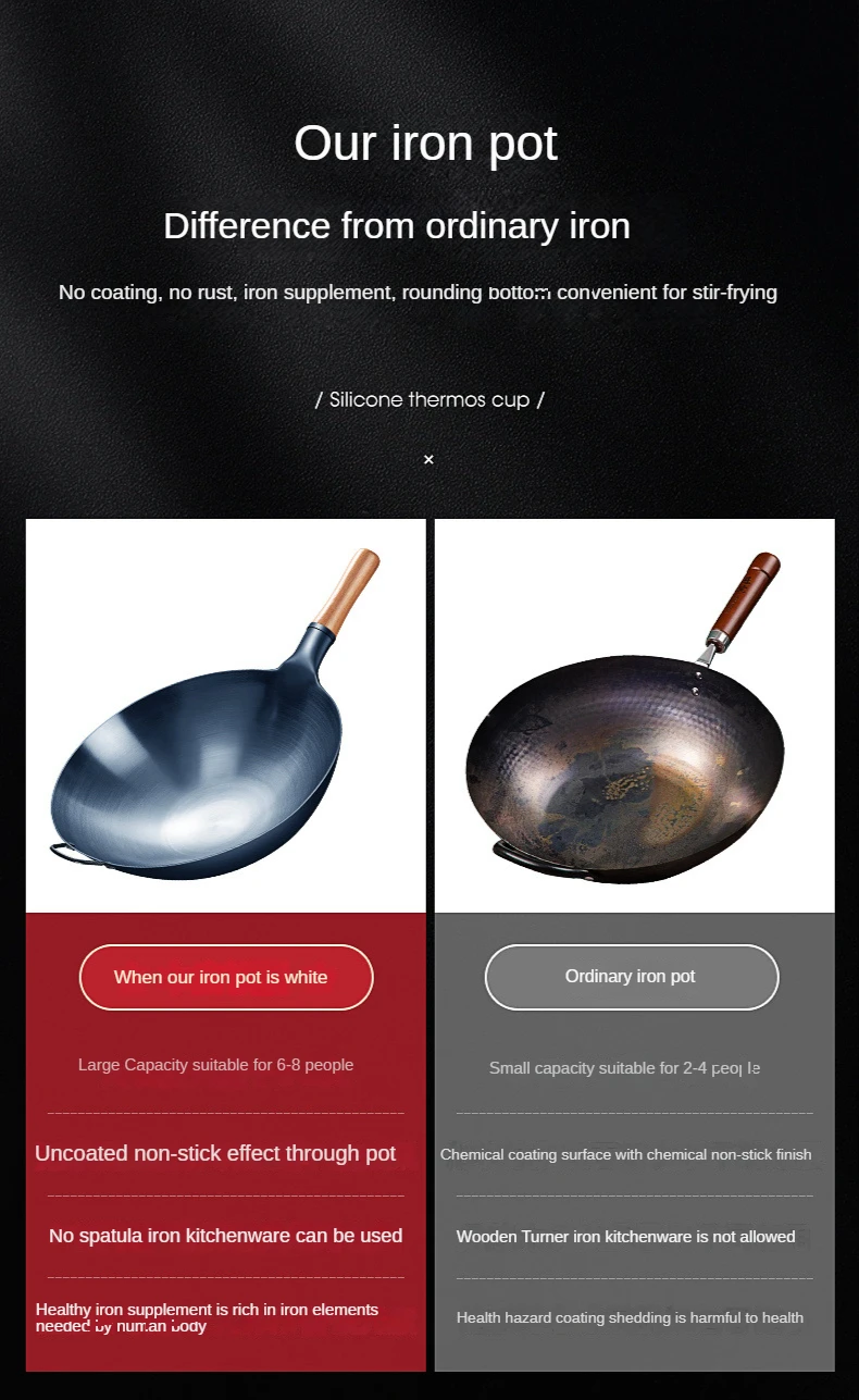 Material: Fine cast iron (pig iron pot), gas stove and stove, etc.