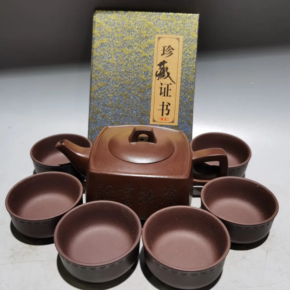 Set Chinese Yixing Zisha Clay Teapot Sifang Pot Gu Jingzhou 300ml