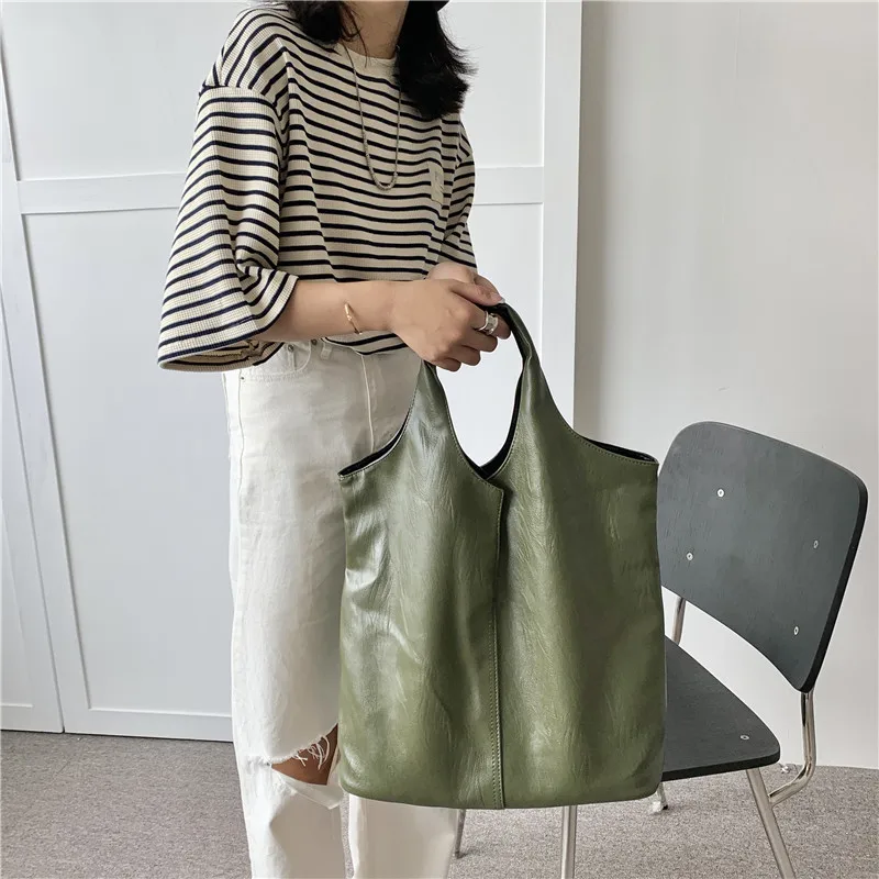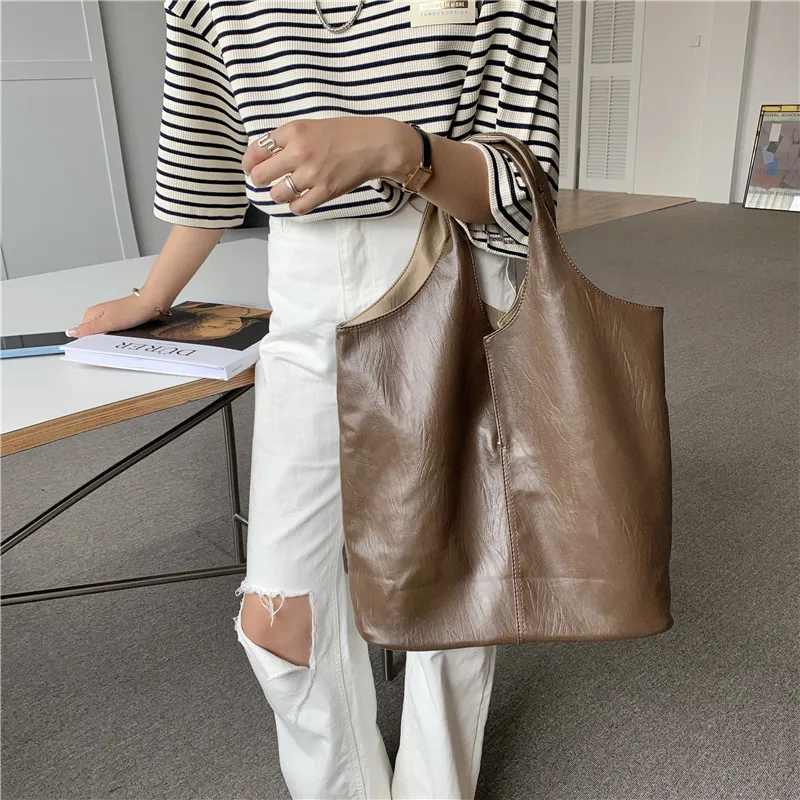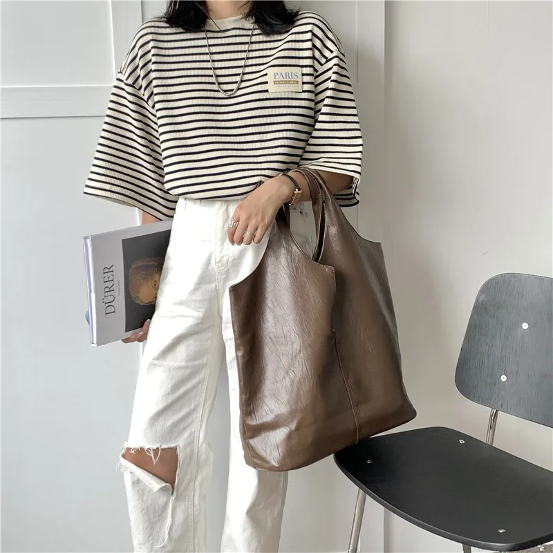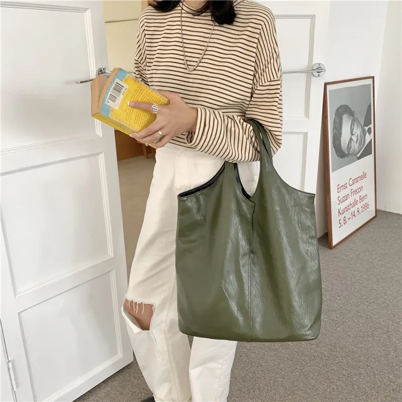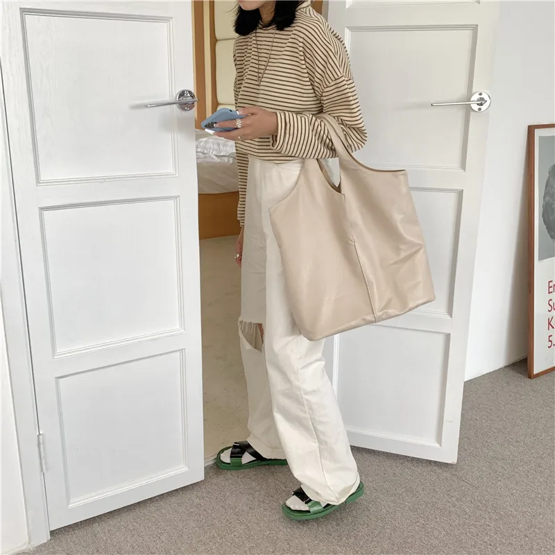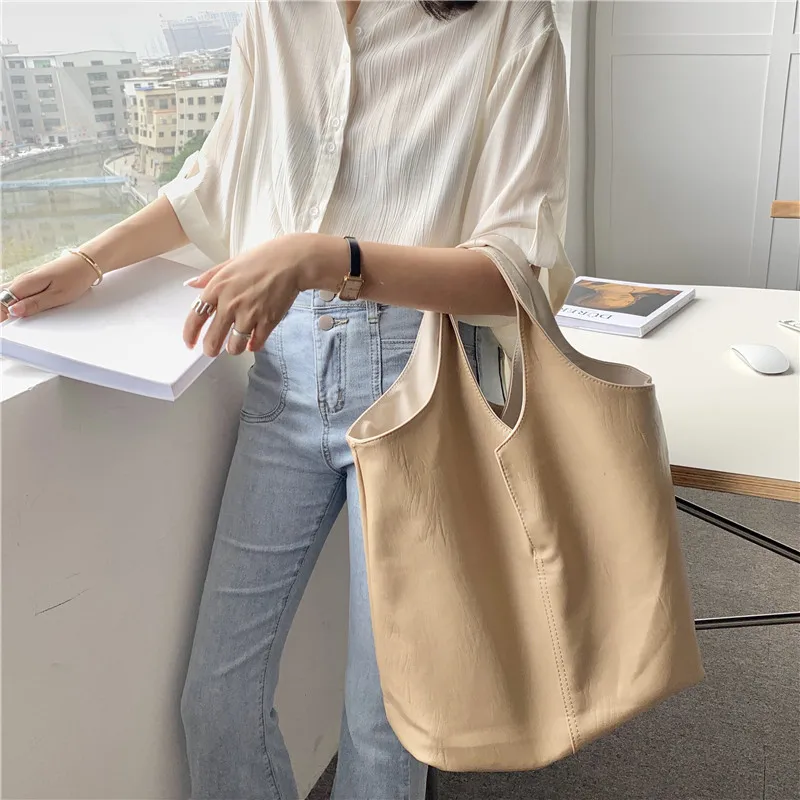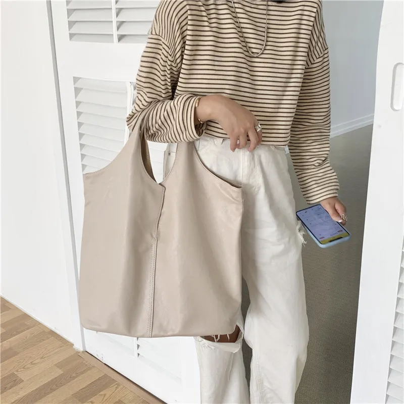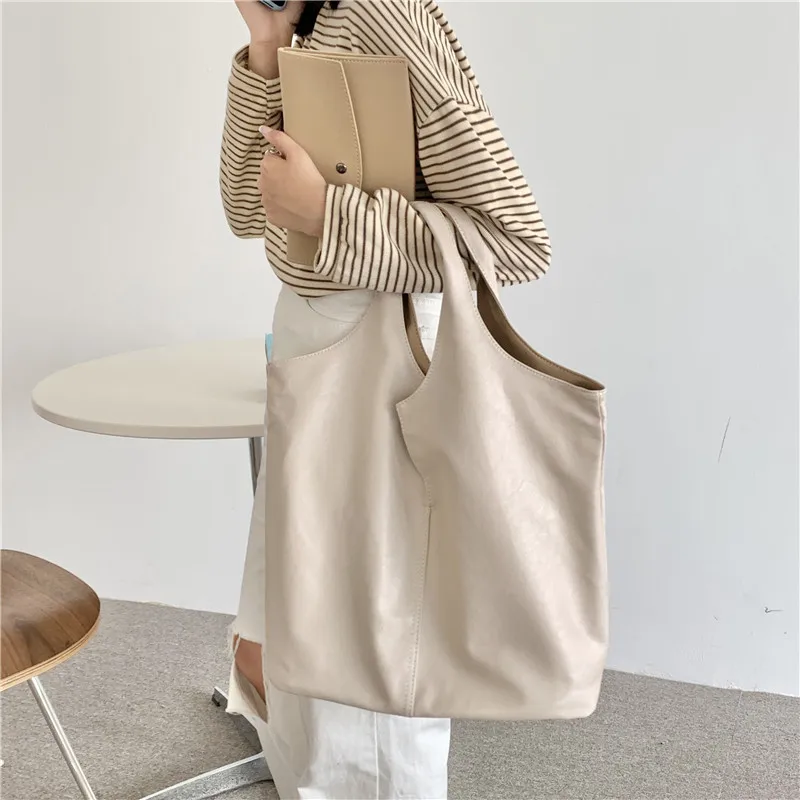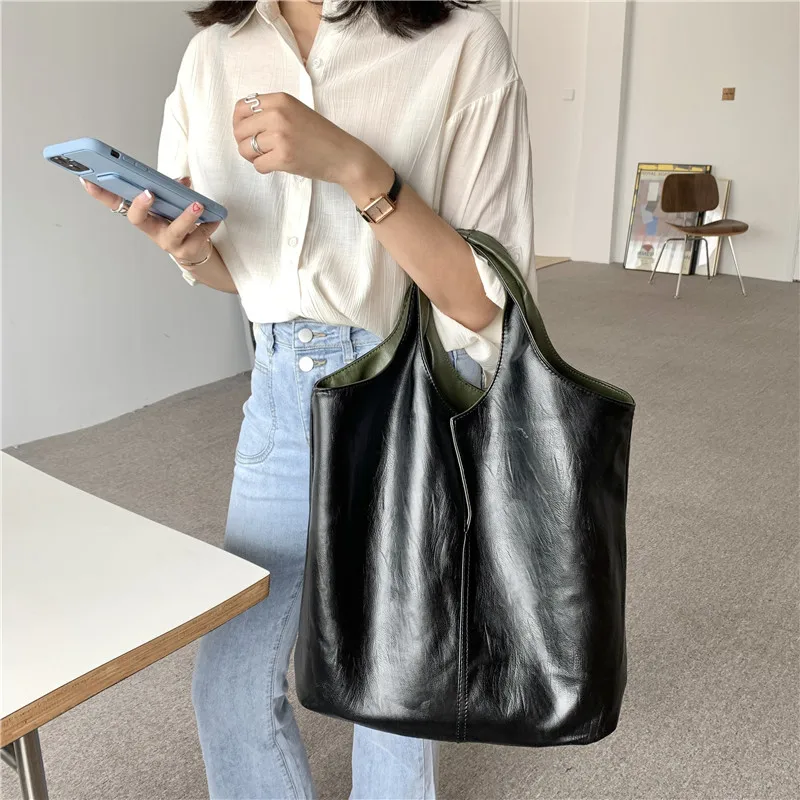 Shoulder Bag For Women PU School Work Business Bag Female Double Side