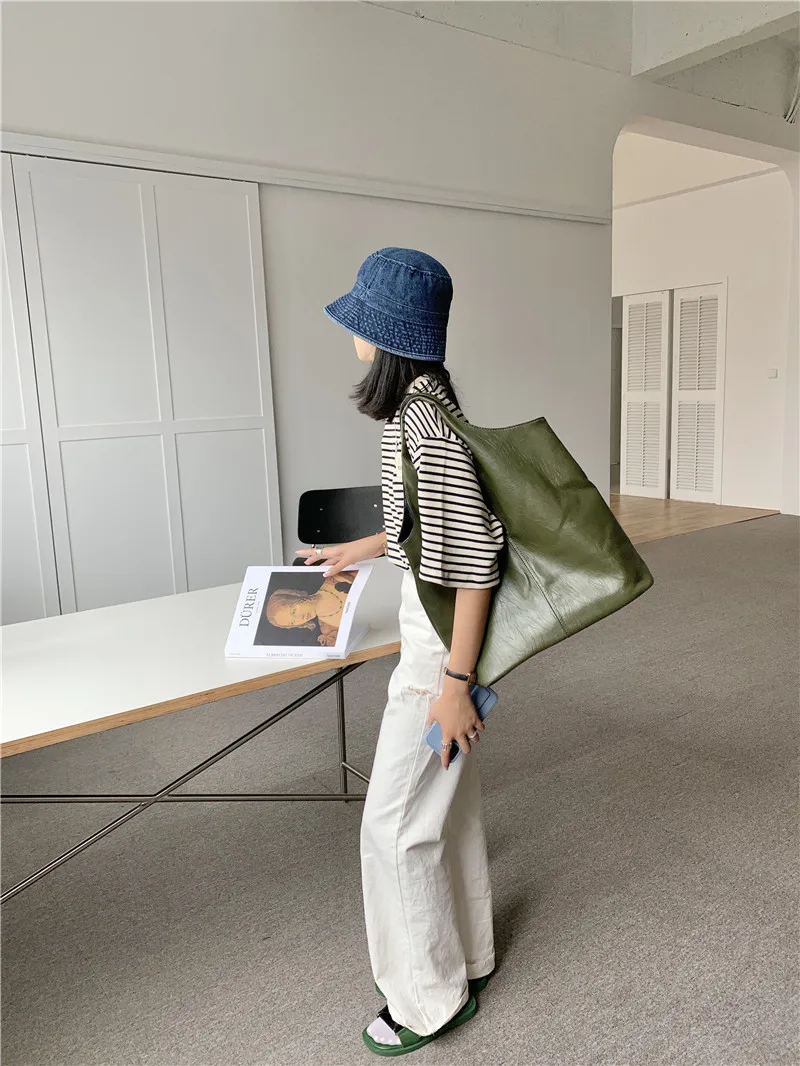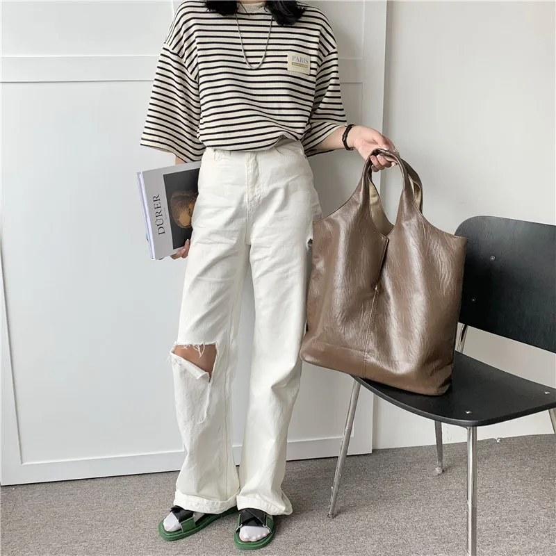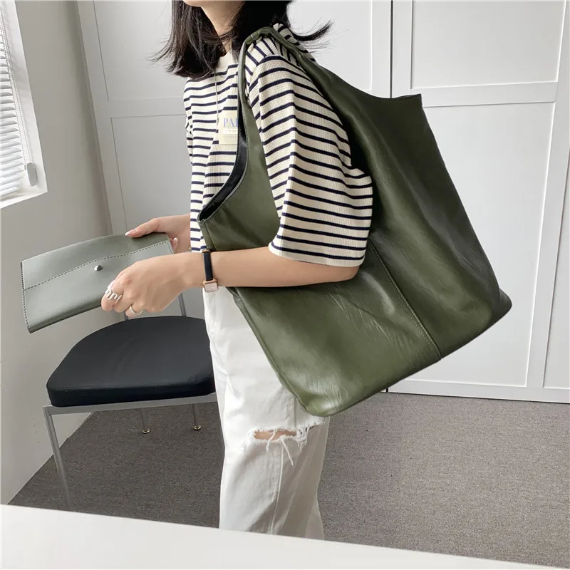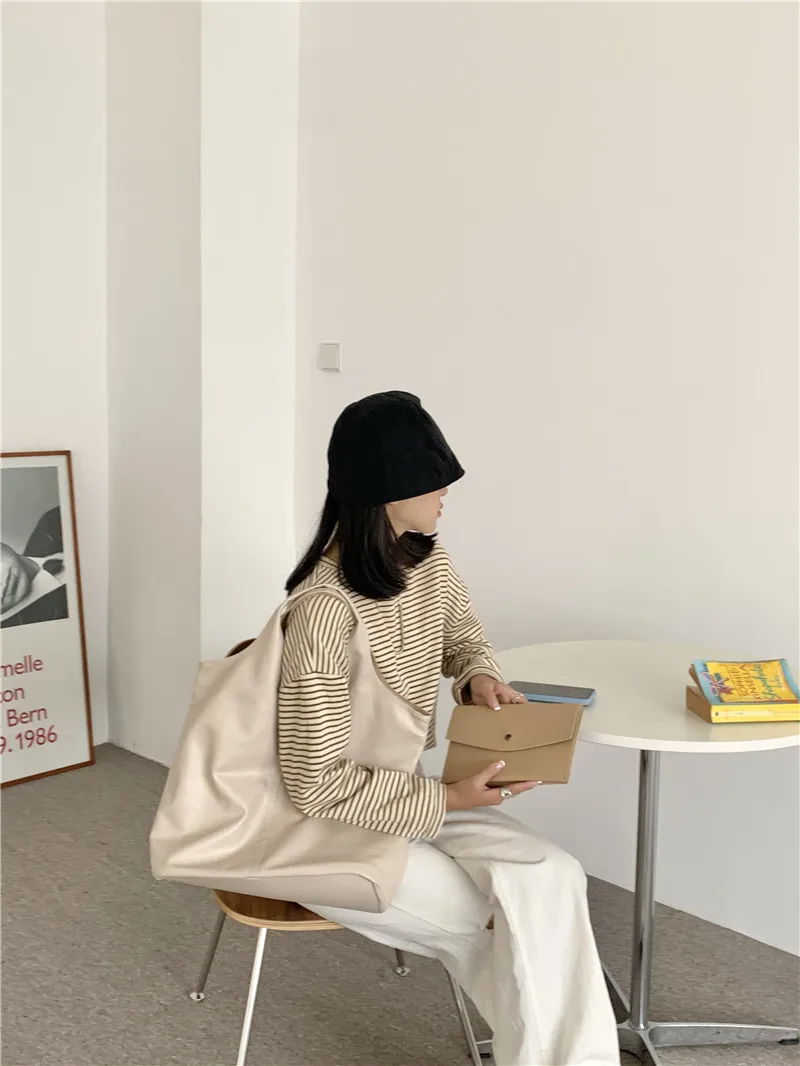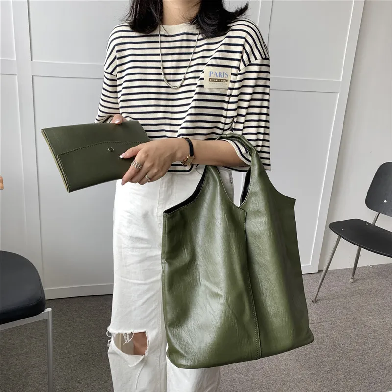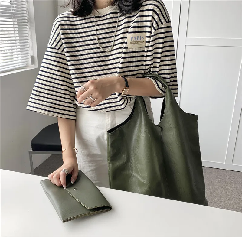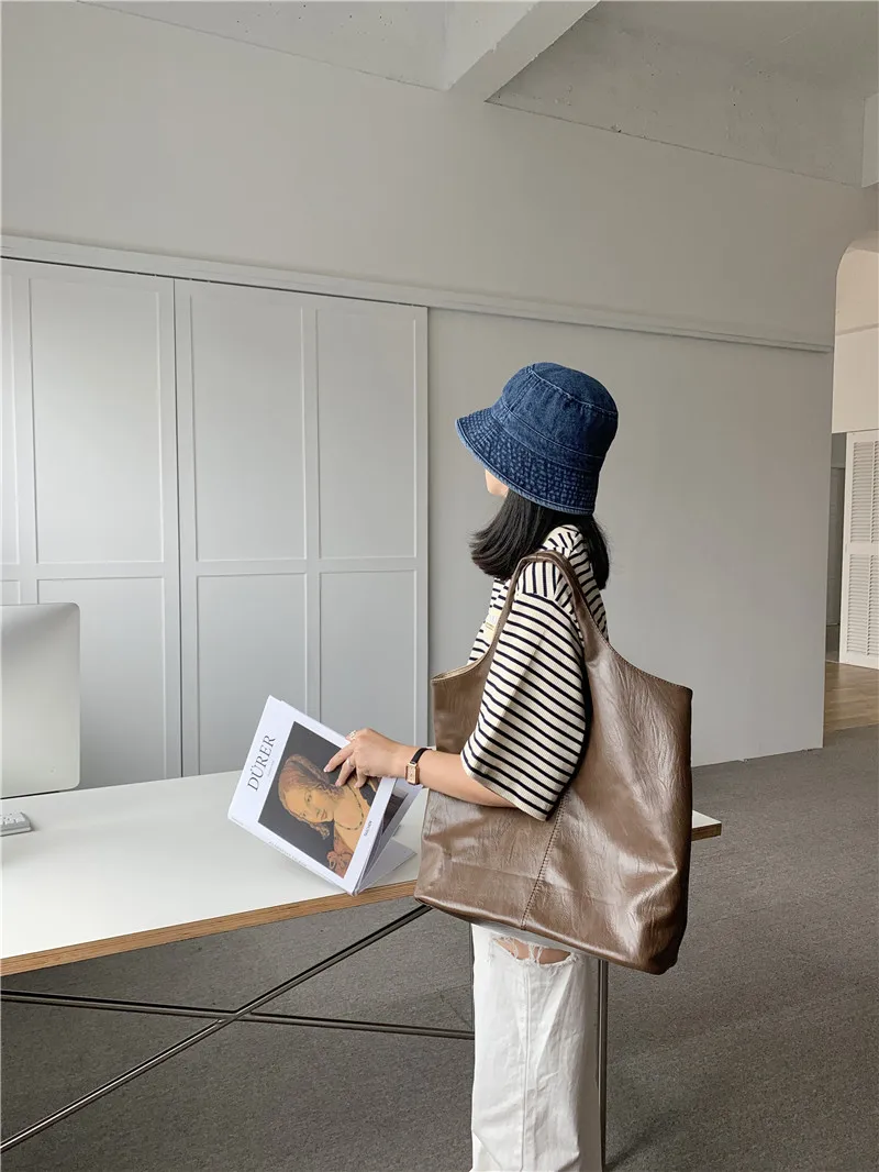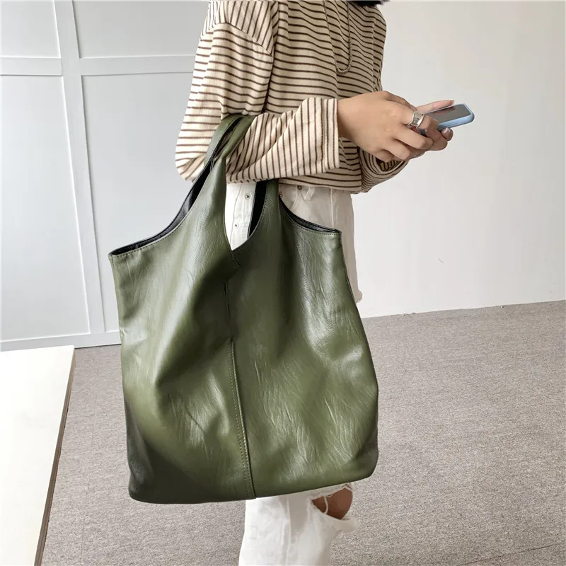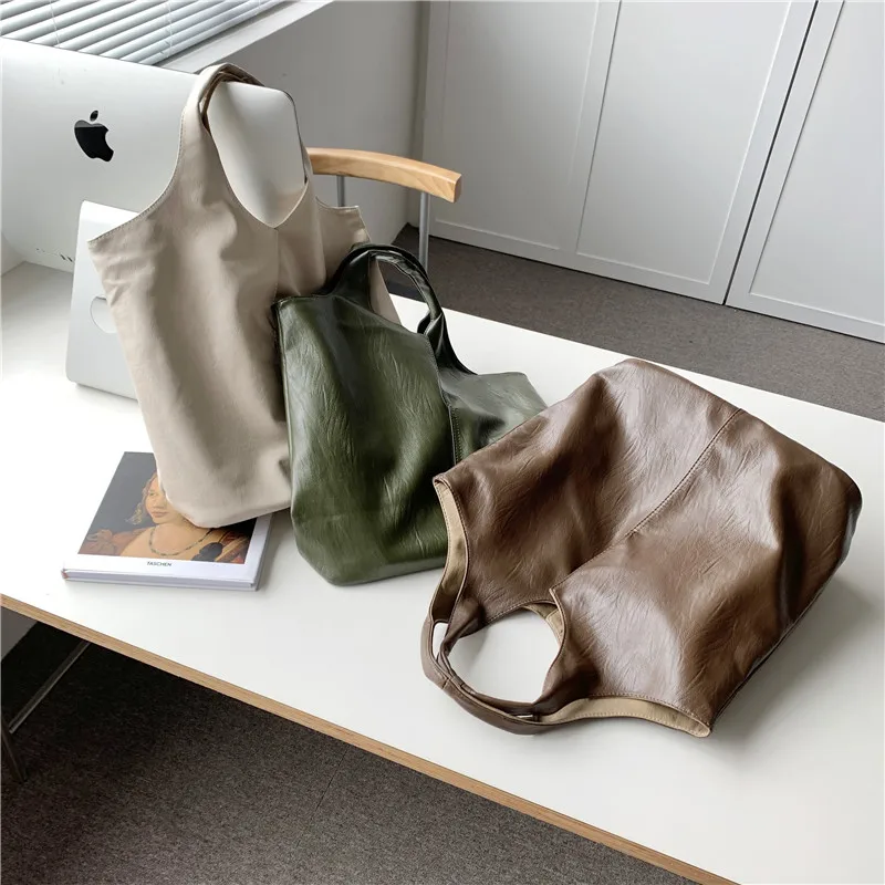 Shoulder Bag For Women PU School Work Business Bag Female Double Side