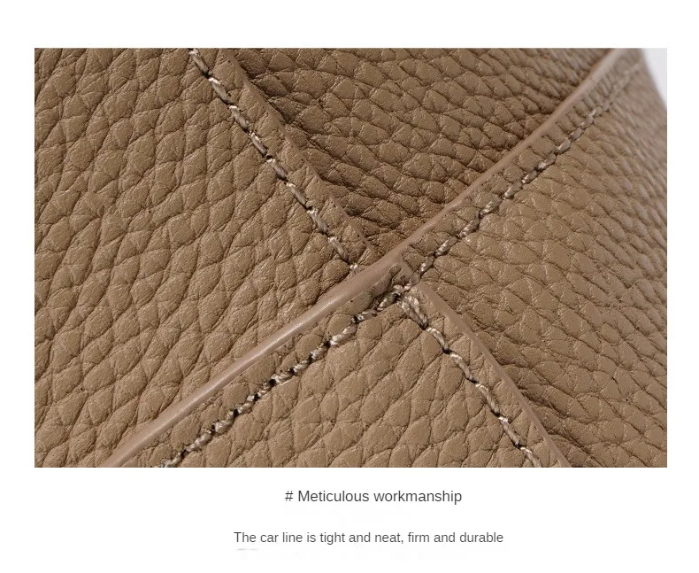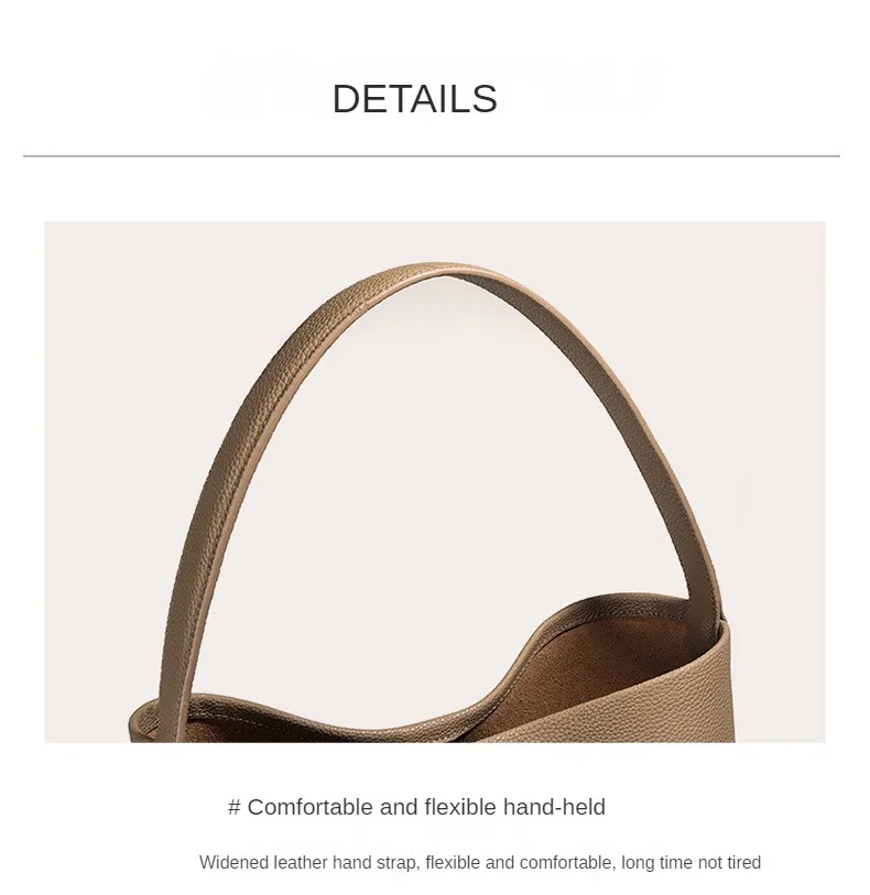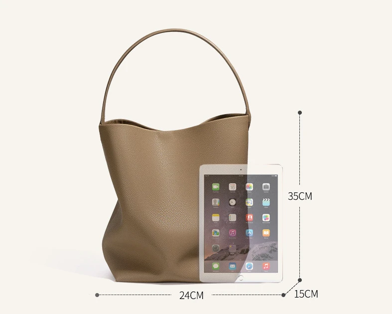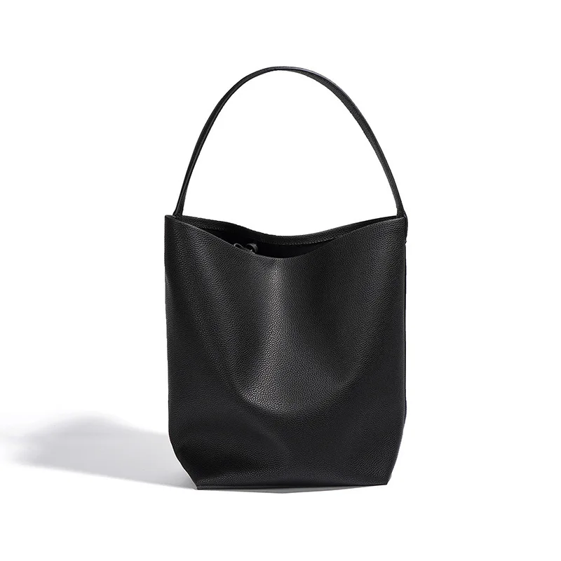 Soft Cowhide Bucket Bag Commuting Large Capacity Minimalism Ladies Tote Hand Bags Litchi Grain Leather Bag Casual Trend