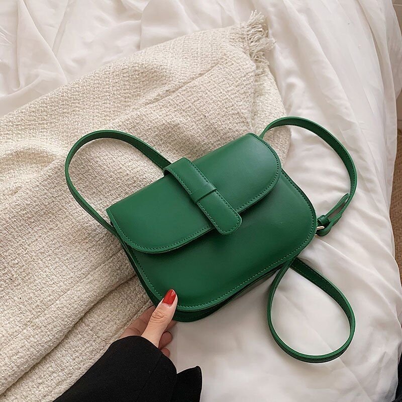 Solid Color Bag Green Leather Crossbody Shoulder Purse Fashion Handbag 20*16*7CM