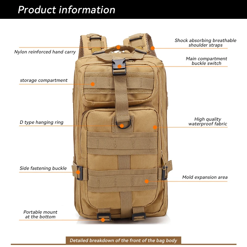 Tactical Pack Backpack Army Bug Out Bag Outdoor Hiking Camping Hunting Rucksack