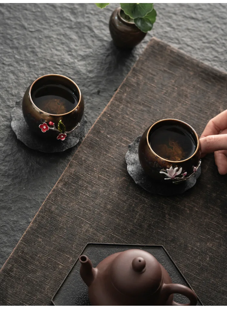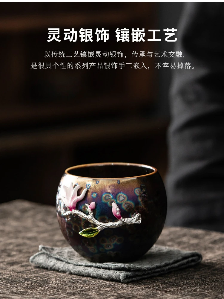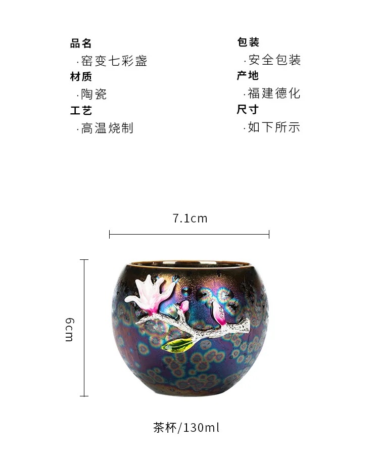 Tea cup, single cup, kiln change, oil drop, Tianmu, colorful gold tea cup, tea set, ceramic household master cup, tea bowl