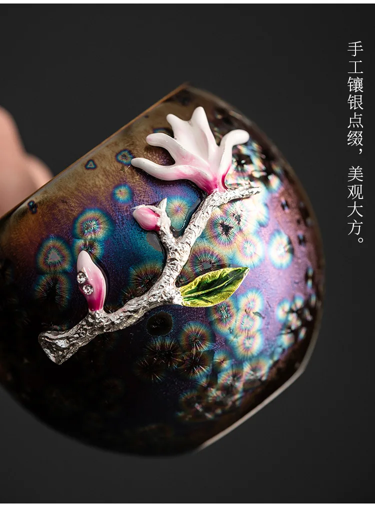 Tea single-cup kiln changes to build oil drops Tianmu colorful gold tea cups tea set ceramic home master cup tea bowl