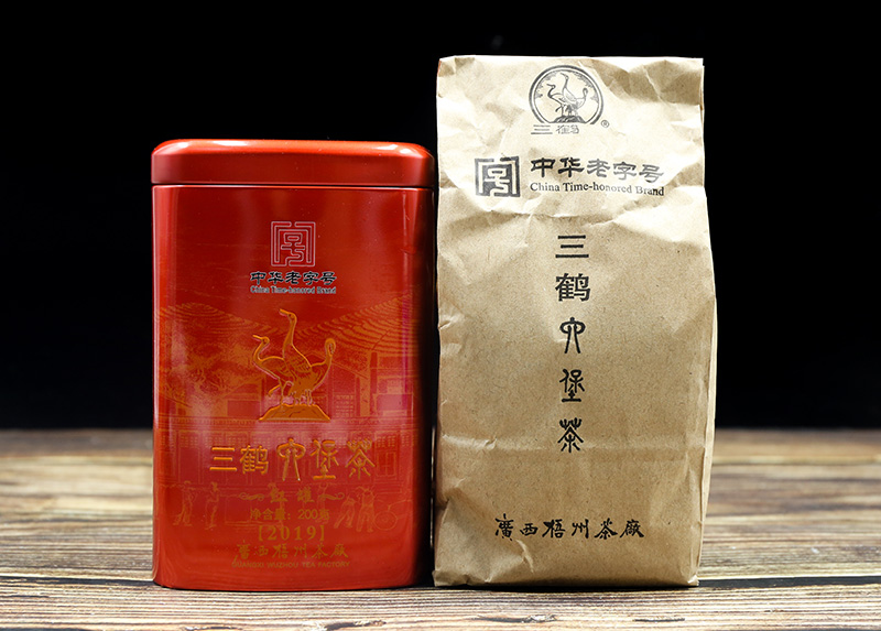 Three Cranes Sanhe Liu Bao Tea Dark Tea Heicha Wuzhou Teas Red Jar 200g