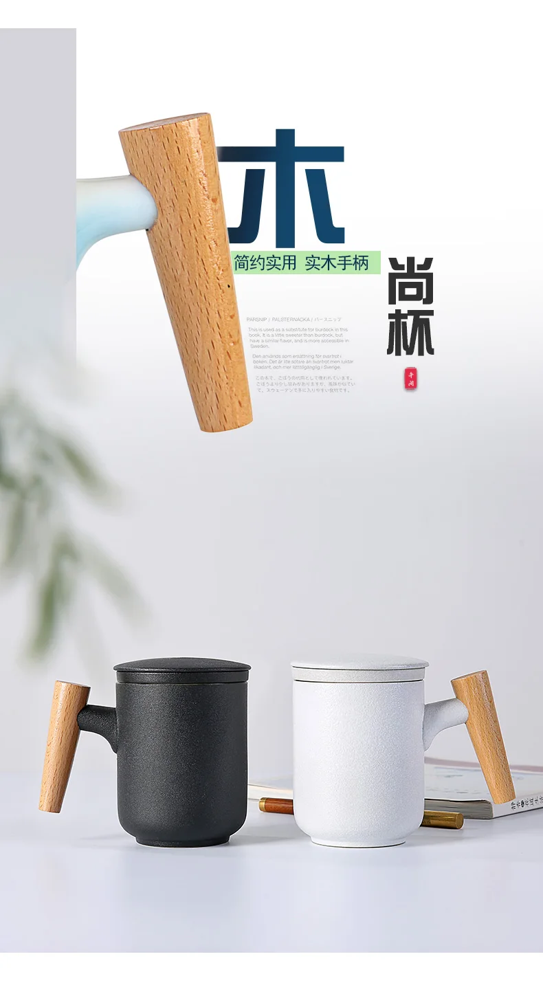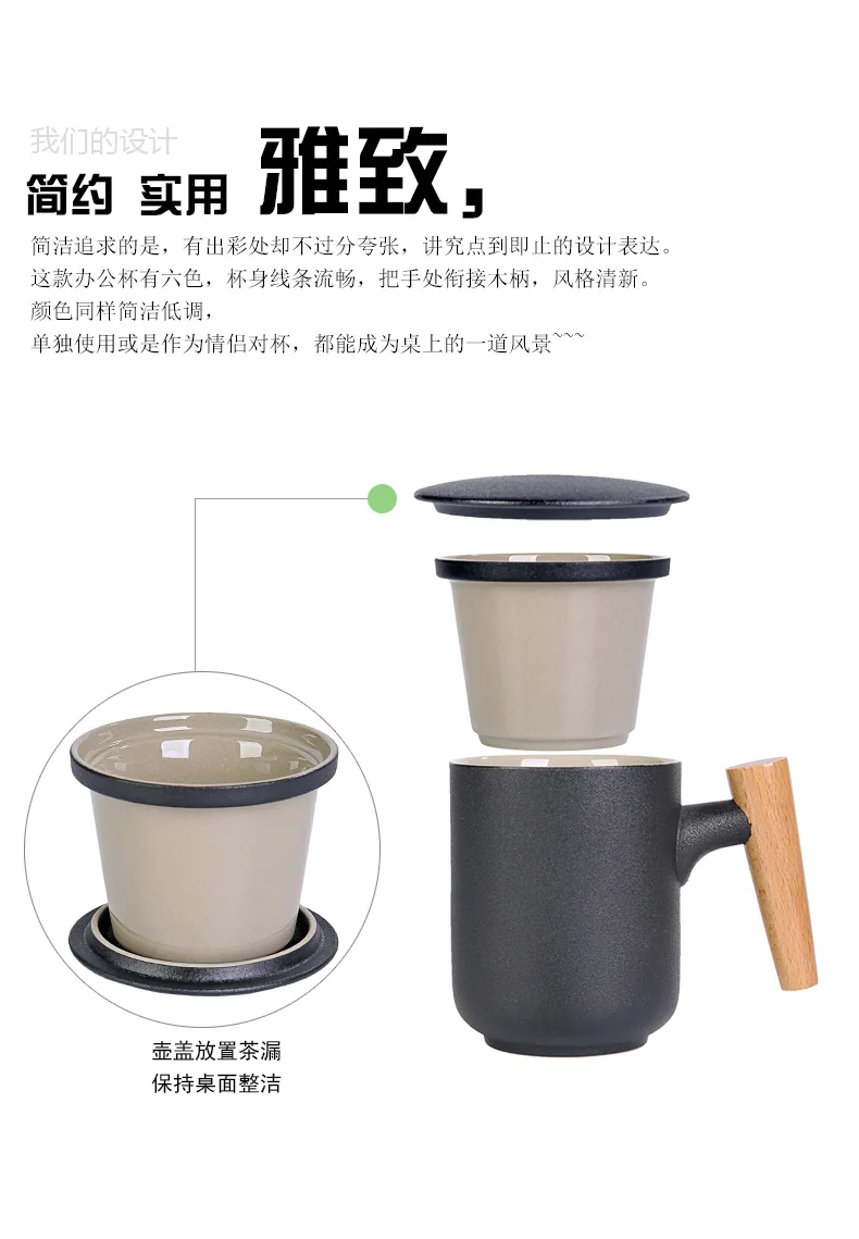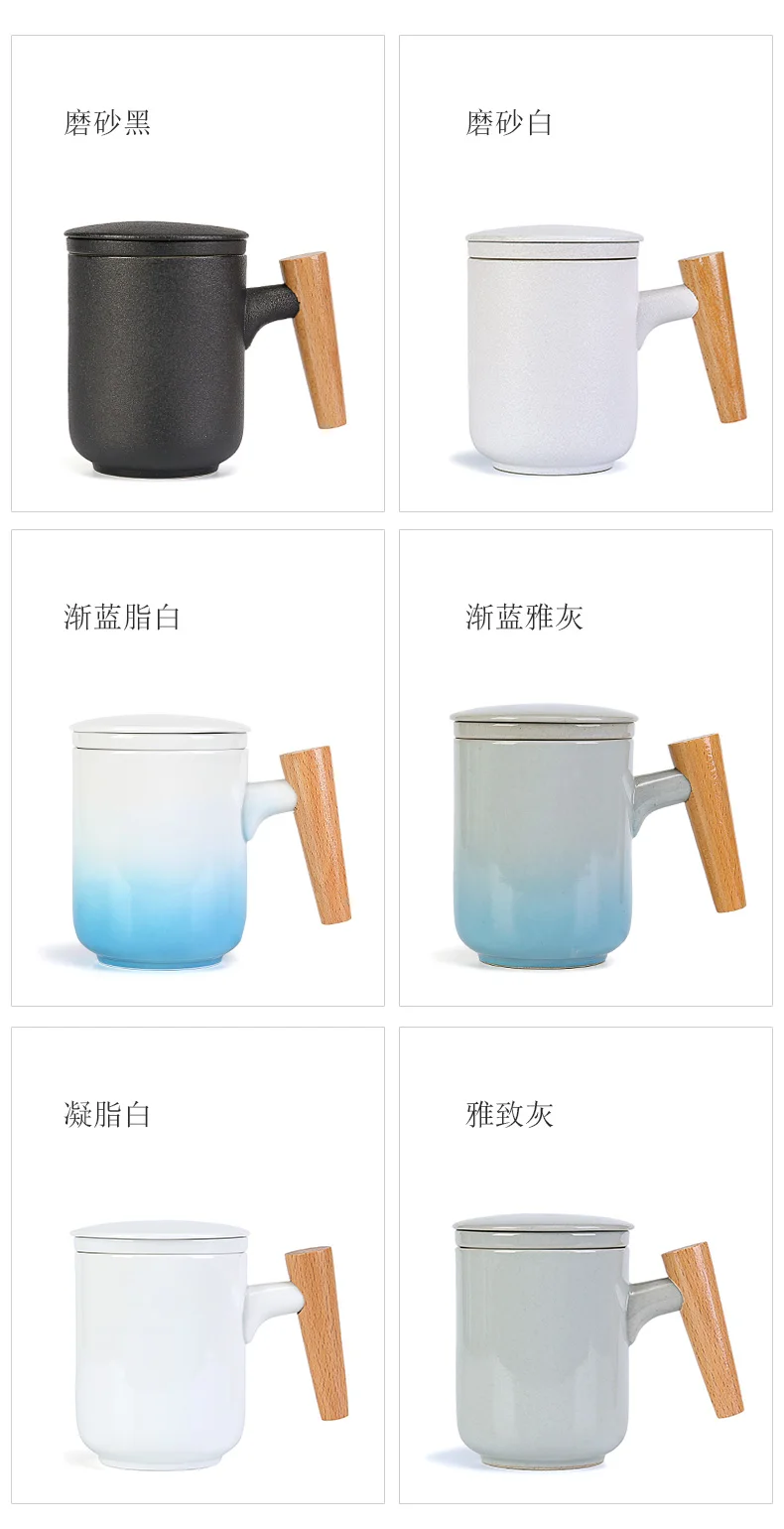 Three-pieces Ceramic Tea Mug Filter Tea Cup Office Mugs Water Cup with Lid Tea Separation Cup