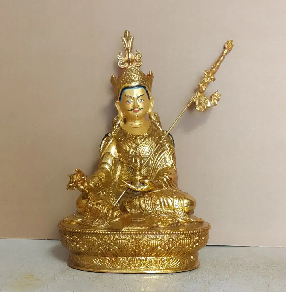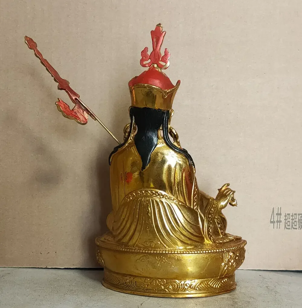 Tibetan Handpainted bronze Padmasambhava Buddha statue gilt Guanyin God wealth