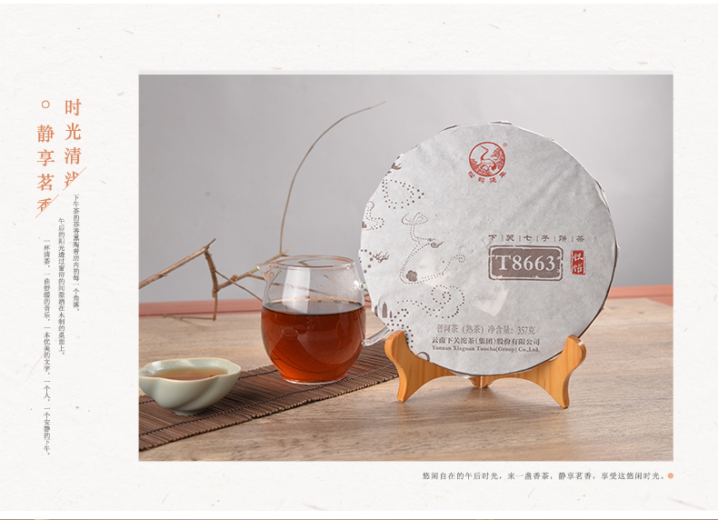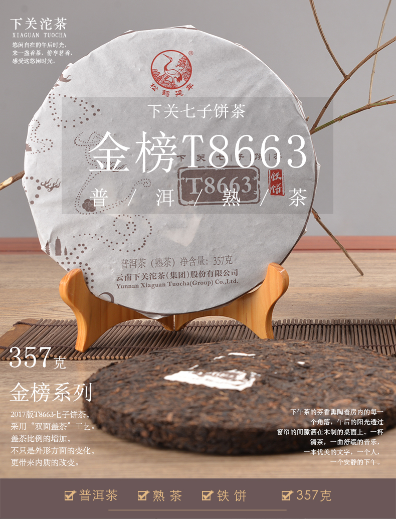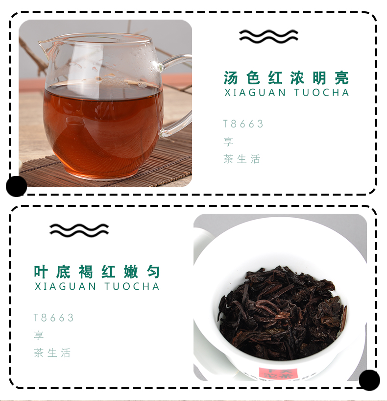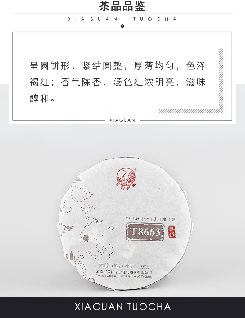 T8663 * Yunnan XiaGuan Tuocha Group Pu'er Tea Pu Er Ripe Shu 357g shimonoseki tuocha Shu Ripe Tuocha Net weight: 357g/pc, Production Date: 2019 Year, Origin: Yunnan,China Manufacturer: Yunnan Xiaguan Tuocha(Group) Co.,Ltd. Description: Ripe or shu pu'erh tea has uncommonly soft earthy flavor and woodsy tones. The tea leaves go through a natural fermentation process before the tea is gently dried. This creates a cup with zero astringency and a deep, rich body. Pu'erh is extraordinarily smooth and deeply refreshing.