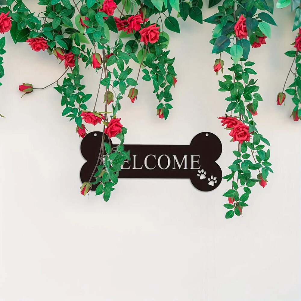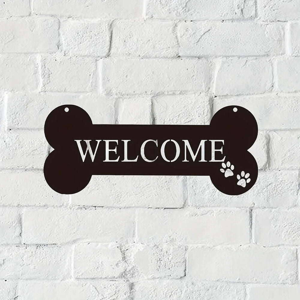 Welcome Bone Dog Metal Sign - Cute Kawaii Wall Decor for Home, Garden, Office