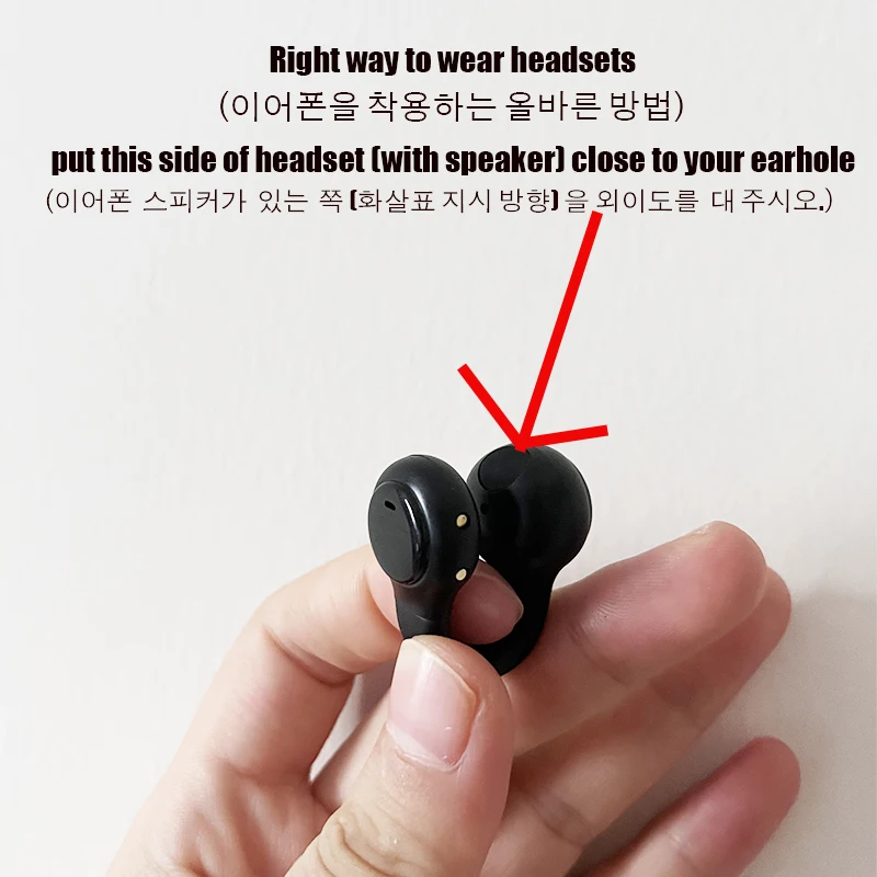 1. Please check if you wear the headset in the right way. Please put the side of headset (with speaker) close to your earhole. As picture shows: