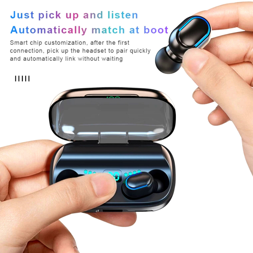 Bluetooth 5.0 Technology - True wireless earbuds deliver latest version Bluetooth 5.0 which provided ultra-stable connection ,faster paring and universal compatibility. The Bluetooth range is up to 55ft away, never worry about any cut off during listening and controlling. One step pairing - Pick up 2 earbuds from charging case they will connect the bluetooth automatically after the first use. Only one step easily pair the earbuds to the mobile phone Bluetooth. 1500mAh Ultra Large Capacity Power - Providing 4-5 hours' playtime from a single fully-charged and totally 90 hours cycling play time with charging case. Comfortable Fit and Widely Compatibility - Compact and ultra-lightweight, these cordless TWS bluetooth earbuds are perfect for workouts, runs, sports and gaming. The in-ear earphones are ergonomically designed to fit snug into each ear. Ergonomical Design Use the ergonomically designed with gel-flexible silicone earcaps to ensure your headphones fit comfortably to the ears. Comfortable wearing and snug fit The Most Advanced Bluetooth 5.0 enjoyment New generation chipset with low energy consumption brings better stability and compatibility. Milanso T11 earbuds works perfectly at the range of 10 meters (33 feet). Super Light-Weight Design Extremely light weight (4g) and mini in-ear design your headphones stay comfortably firm in place and improve the experience on sports. Package Included: 2 x Earbuds 1 x Charging Box 1 x Charging Cable 1 x User Manual