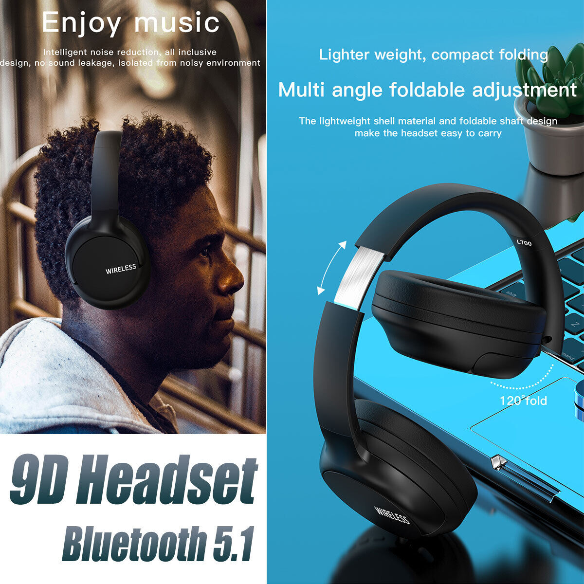 --Wireless headphones use BT V5.1 technology, delivering high speed and stable transmission.