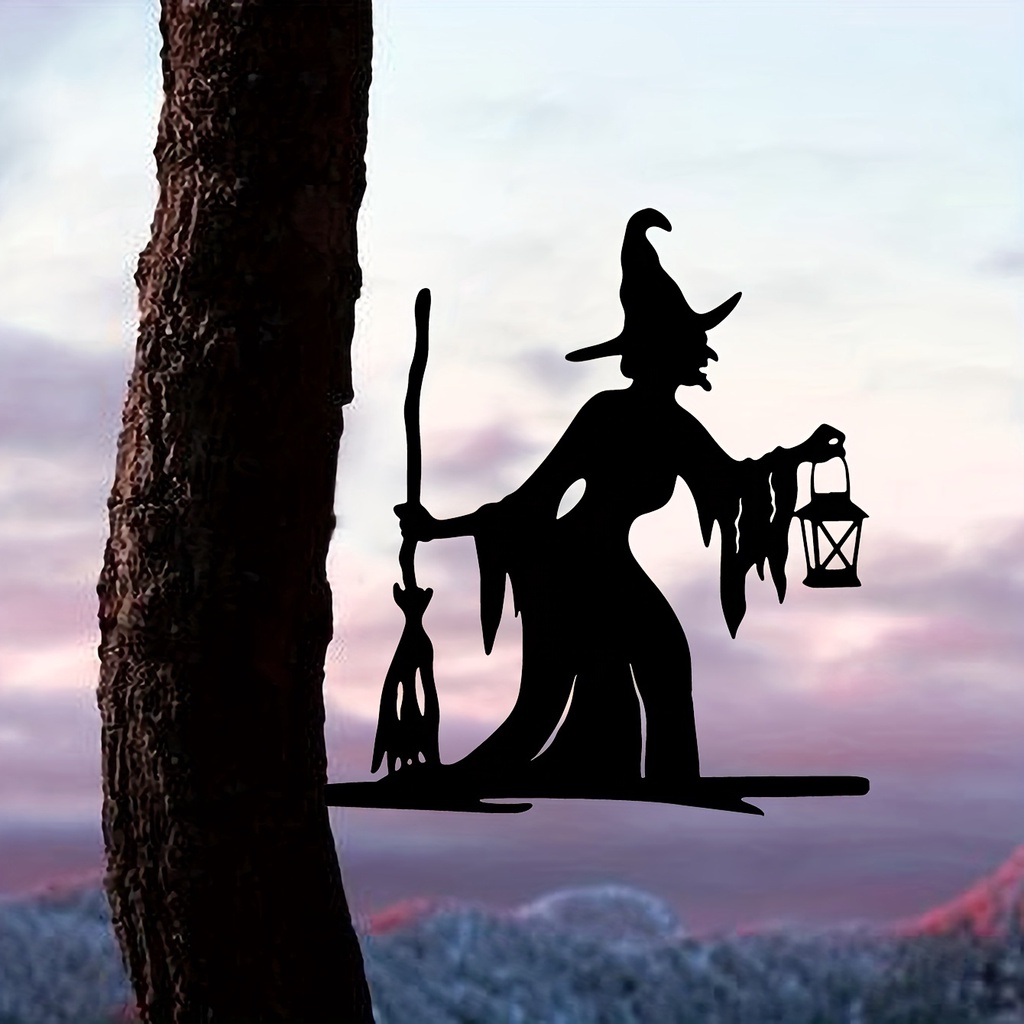 Witch Lantern On Branch Steel Silhouette Garden Yard Patio Statue Stake