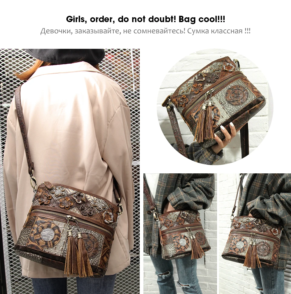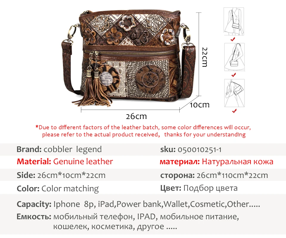 Title: Cobbler Legend Women Bag Bohemian Genuine Leather Designer Floral Bags Luxury Shoulder Bag Tassels Bag Vintage Splice Handbags