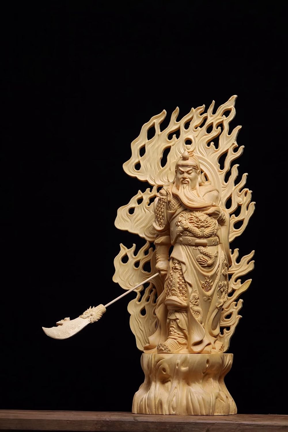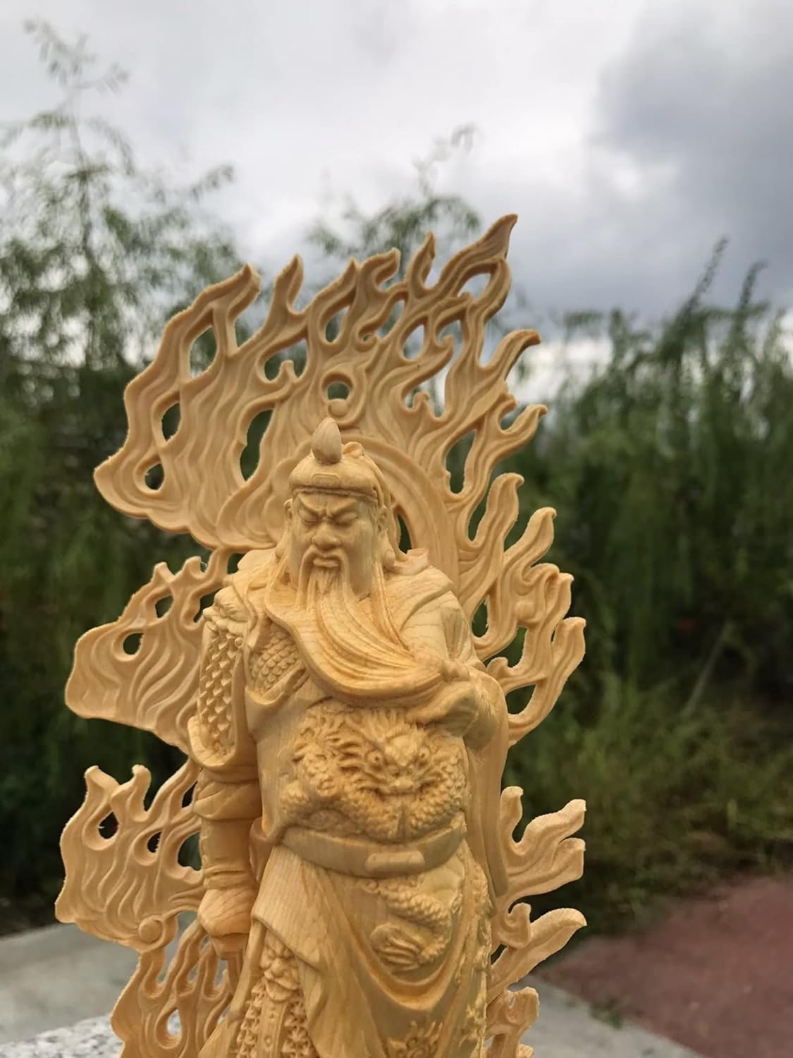 The wooden material used in the statue's construction not only adds to its aesthetic appeal but also imbues the piece with a natural energy and warmth.