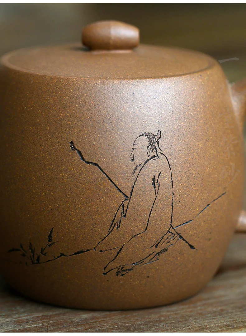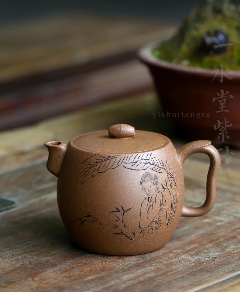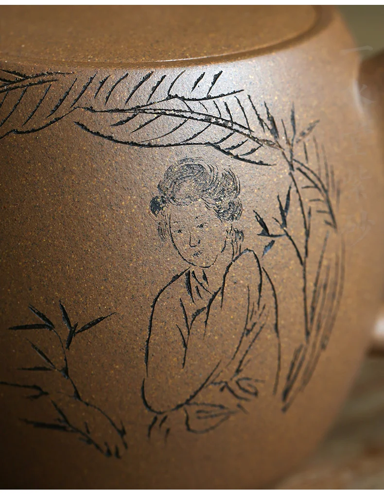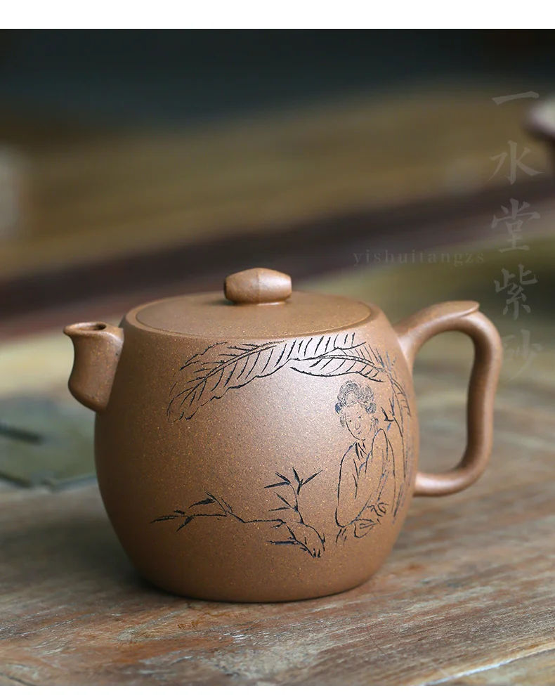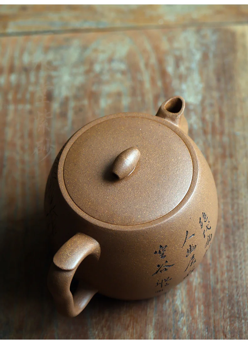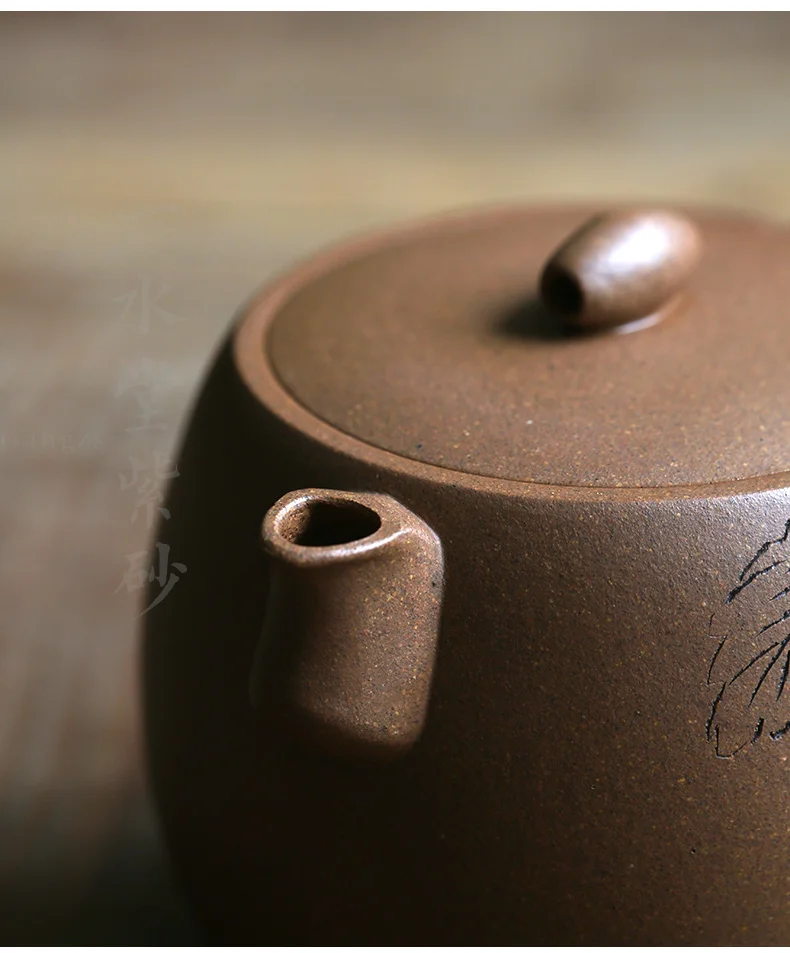 Yixing monohydrate hall are recommended pure manual famous old mud carved lotus nut draw banana recommended 290 ml