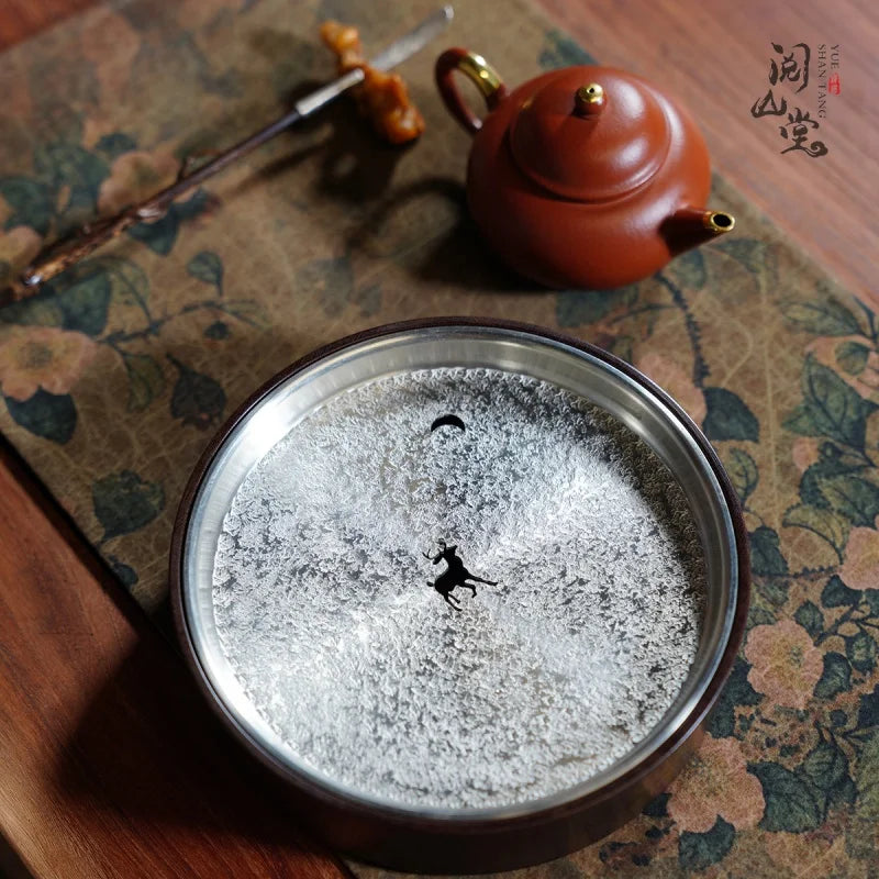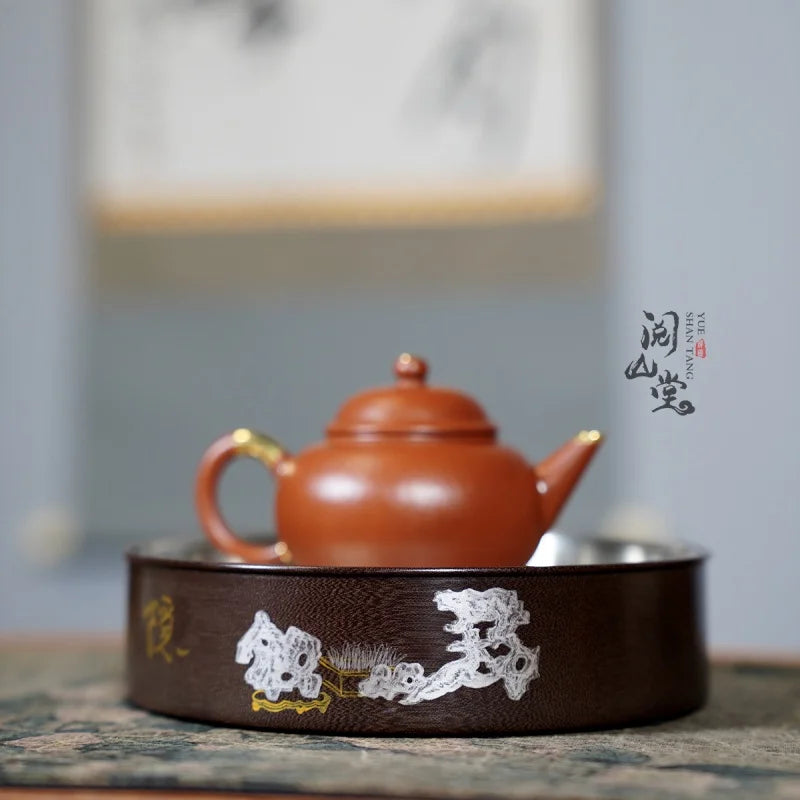 Yueshan Hall | Hidden Mountain Pot tray Hand-Punched Tin Cover Paint Gold Painting Craft Tea Mat Ornaments