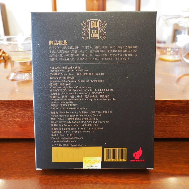 Form: Compressed Brick Tea Origin: Hunan Province, China Tea Type: Dark Tea Product date: (Sent randomly). Package: Box Packing Net Weight: 318g Shelf life: The longer the better Storage Method: In ventilation, dry and no odor, storage in normal temperature environment . China Manufacturer: Hunan Provincial Baishaxi Tea Industry Co. Ltd This Fu cha also called Golden flower tea - For many centuries, "Golden Flower" - the golden fungus in Hunan Province dark tea - has been a dietary supplement to the people of Tibet. Under a high magnifying glass, the golden flower is golden yellow, shaped like a spherical mushroom. Clinical studies have shown the bacteria can effectively inhibit the proliferation of colon, gastric and liver cancer cells. Recent Hunan Agricultural University studies have found that eurotium cristatum (Golden Flower) can play an active role in prolonging the life span of human beings. In addition, it also has a very significant effect on the improvement of intestinal, hyperglycemia, hyperlipidemia, hypertension, diabetes and other chronic diseases. The golden flower is generally not easily washed out when tea is made, because the golden flower is grown on the tea. Experiments show that at 120 degrees Celsius, after 20 minutes, the flower remains active. The Golden Flower fungus is now the only fungus listed in China's tea industry as a high-level trade secret protected in China. ![]() ![]() ![]() ![]() ![]() ![]() ![]() ![]()