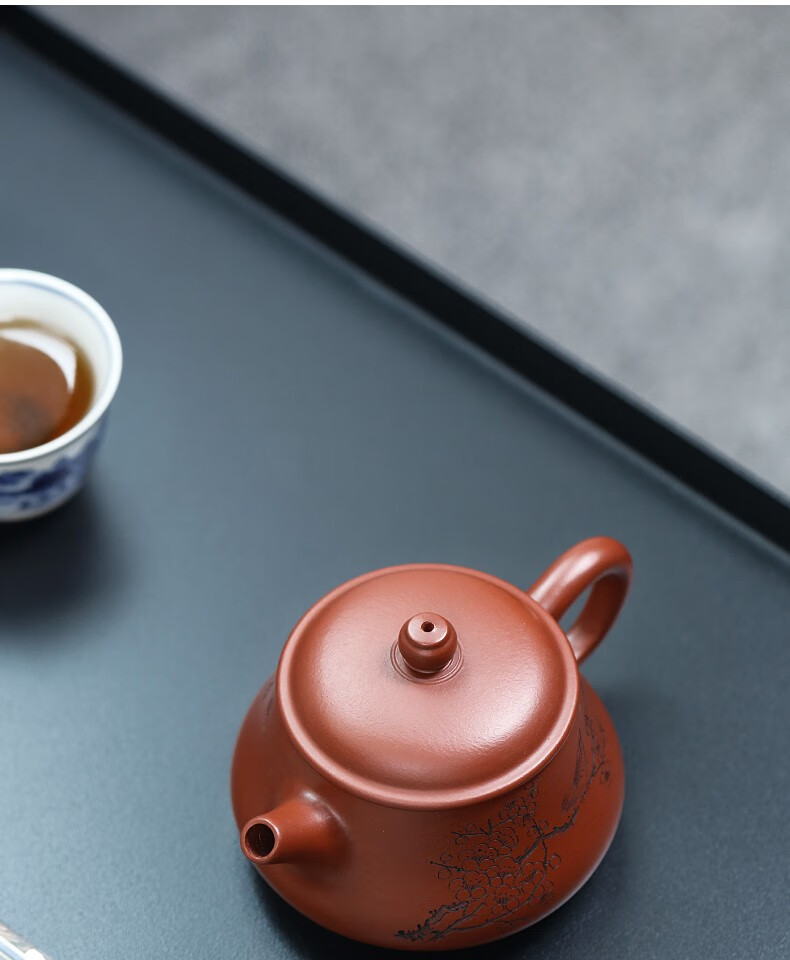 Zanghutianxia Yixing Purple Clay Pot Handmade Carving Sketch Kung Fu Teaware Single Pot Raw Ore Dahongpao Tea Teapot Xi on the E